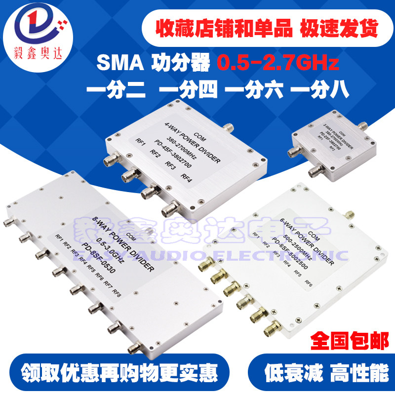 📚 SMAK母头微带功分器一分二分四分六分八0.5-3GHz低衰减功率分配器