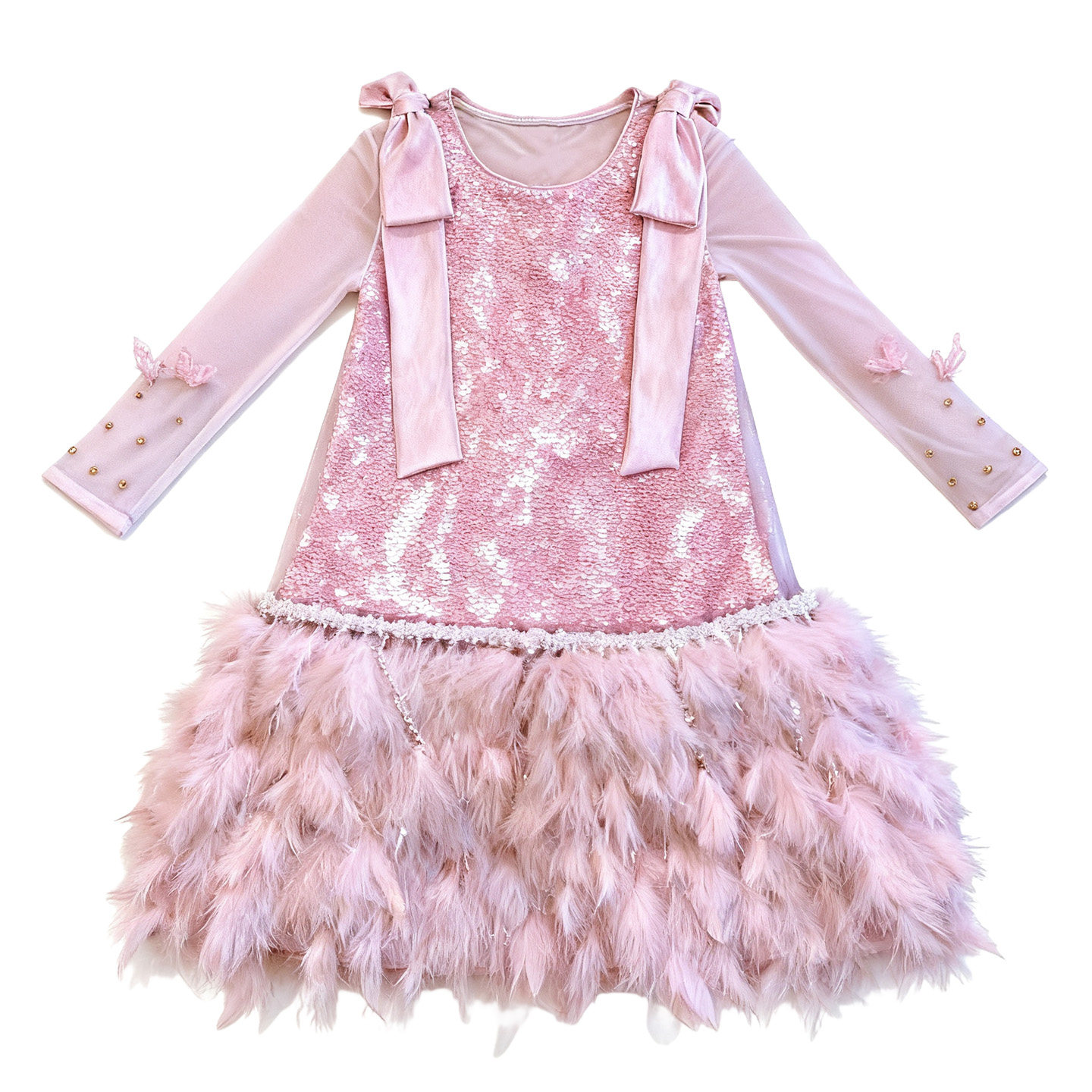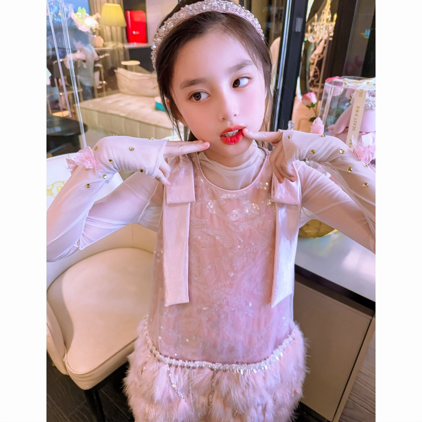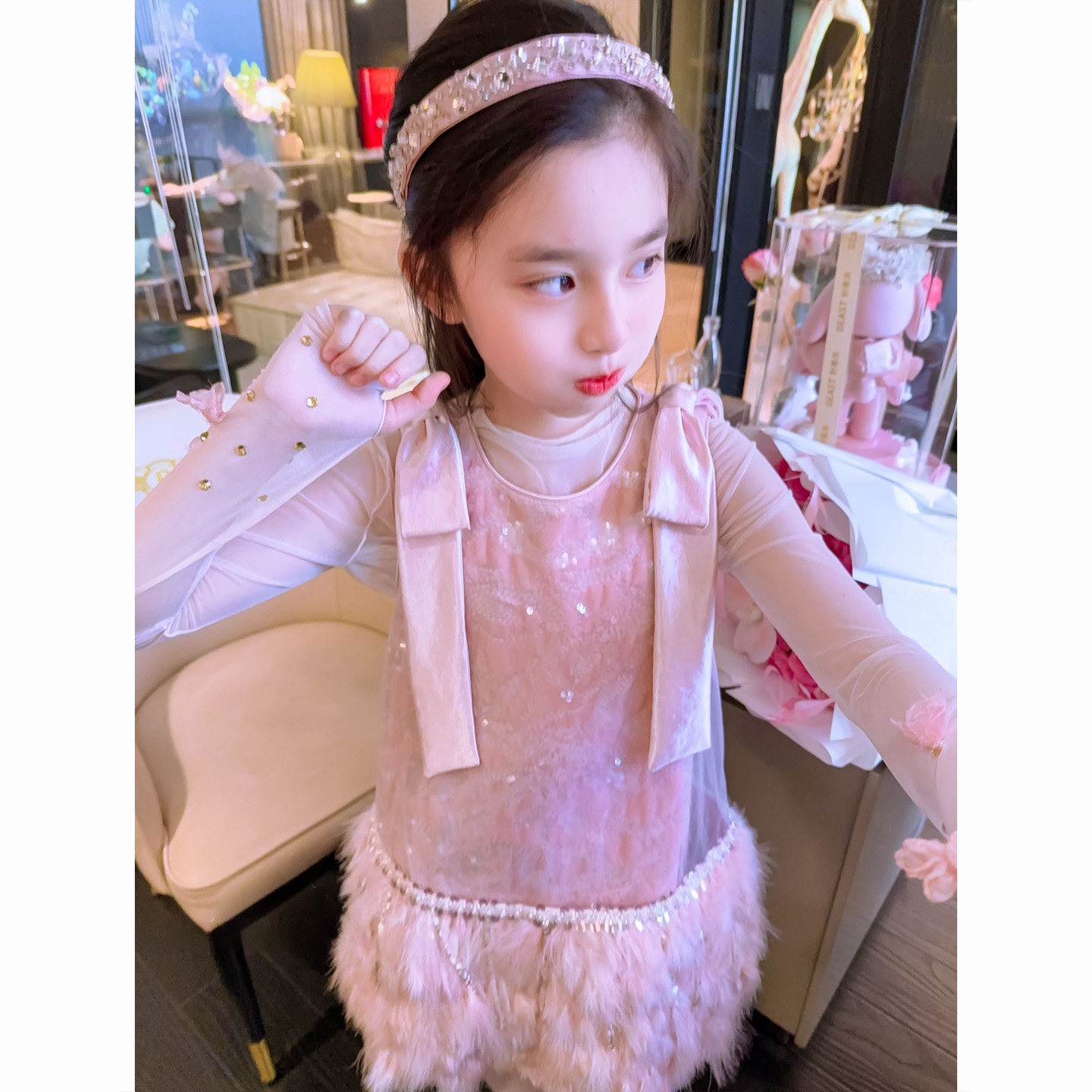#高级感女童连衣裙 #秋冬季新款 #粉色羽毛背心裙子 #公主裙 #券后价83元