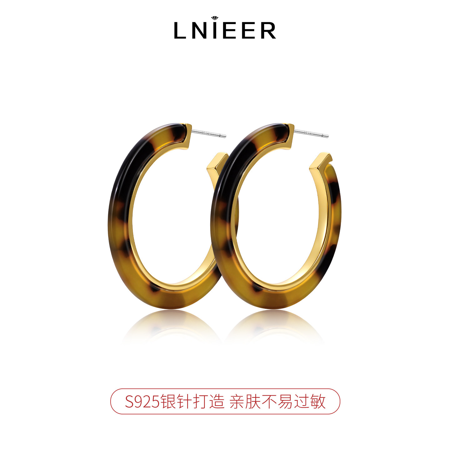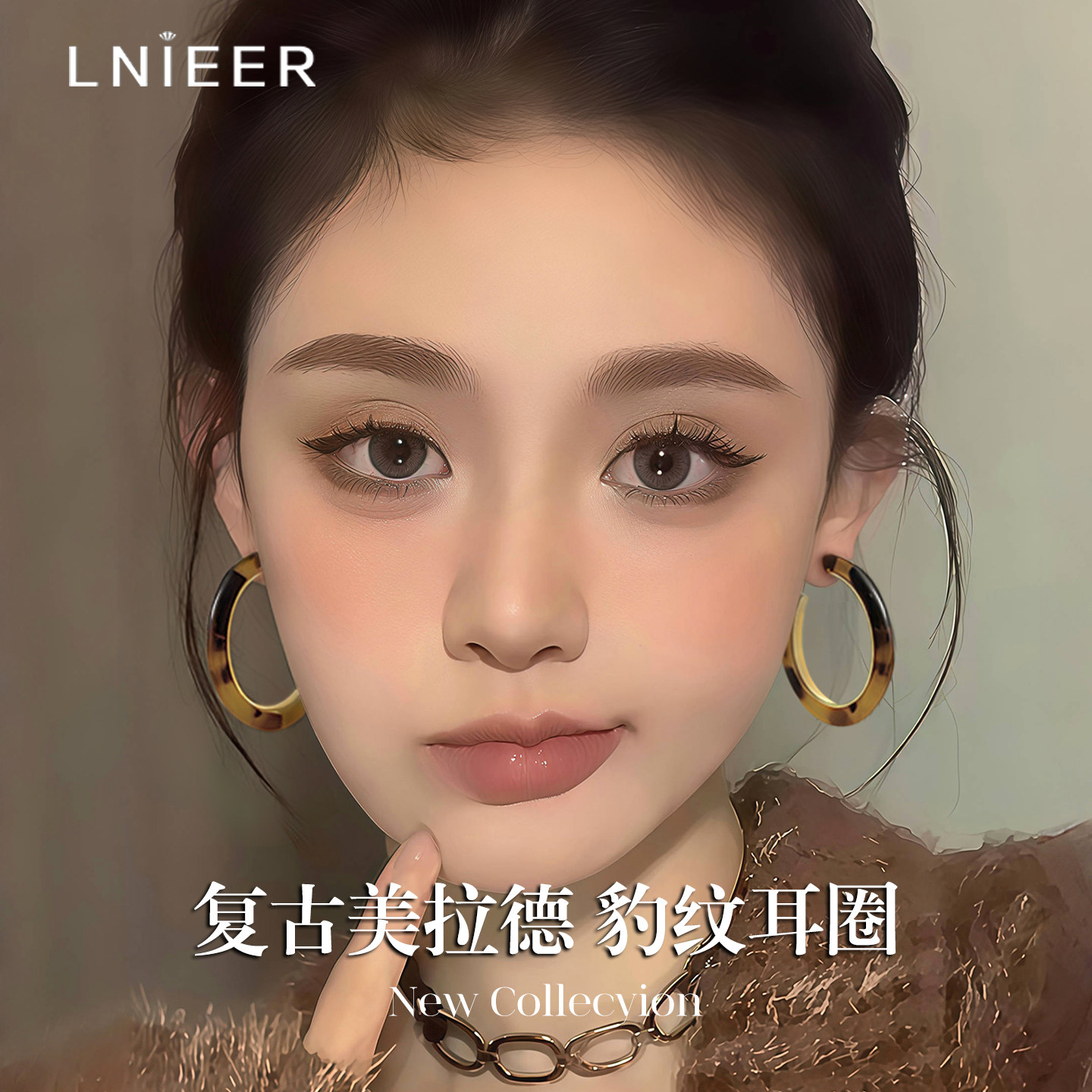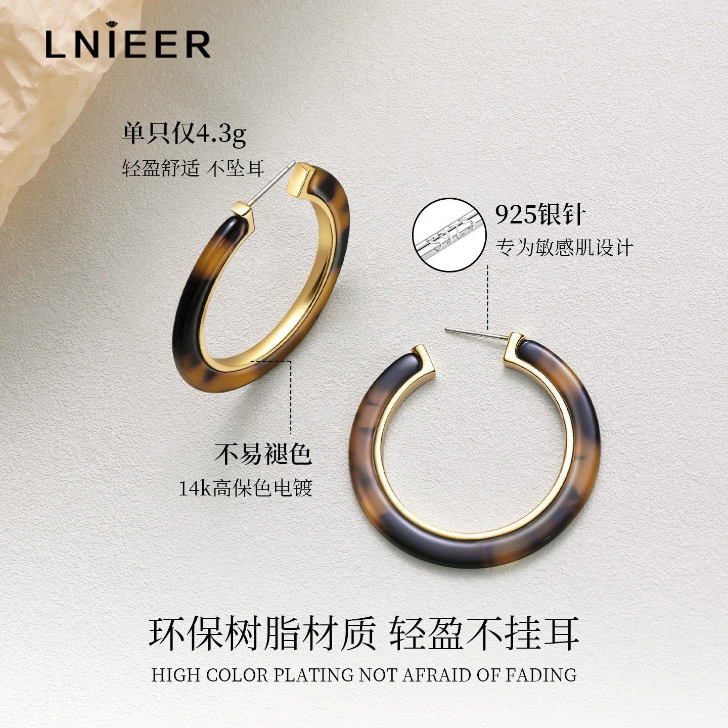 📚 925纯银针美拉德玳瑁色豹纹耳圈复古港风小众耳环女2025新款耳饰
