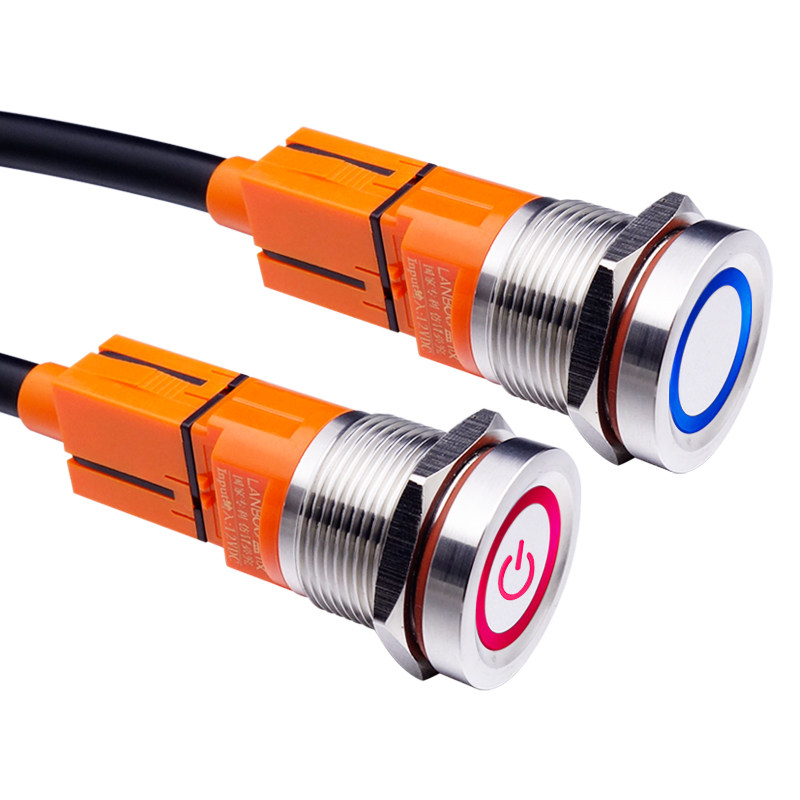 📚 双色触摸按钮开关触碰通电自锁式自复式DC12VM19mm输出1常开开关