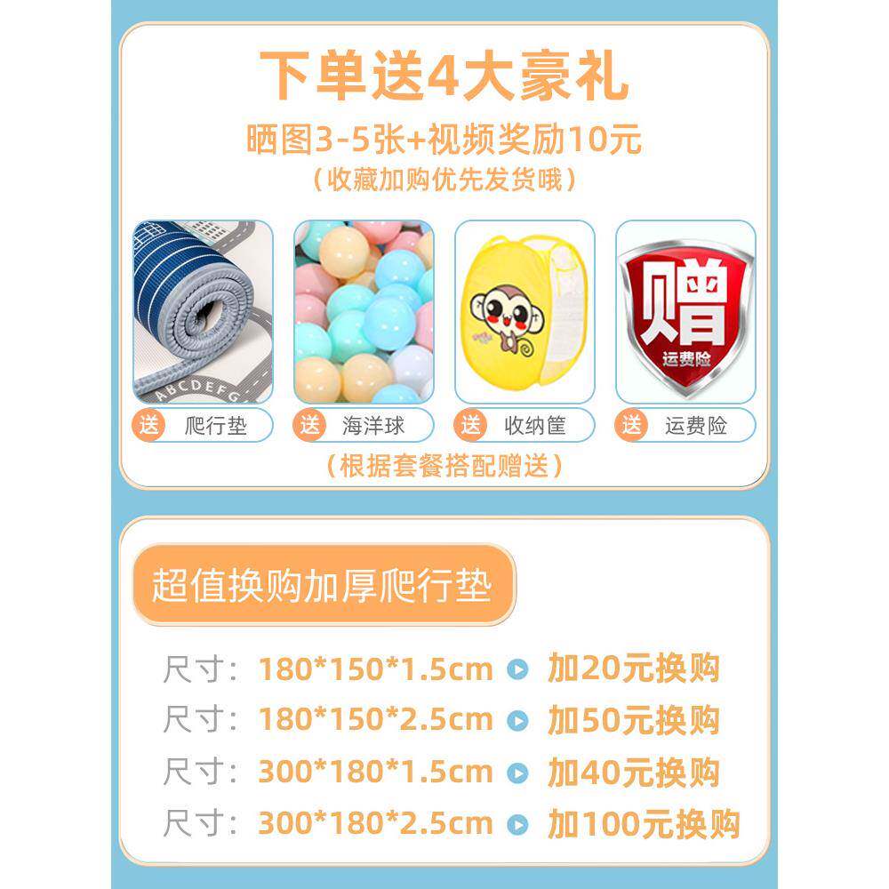 📚 儿童围挡护栏婴儿地上可折叠室内宝宝爬爬垫带围栏小户型客厅玩耍