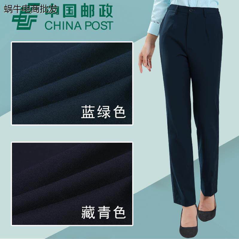 📚 邮政工作服女制服裤子藏青行服工装蓝绿邮局直筒西装裤正装裤