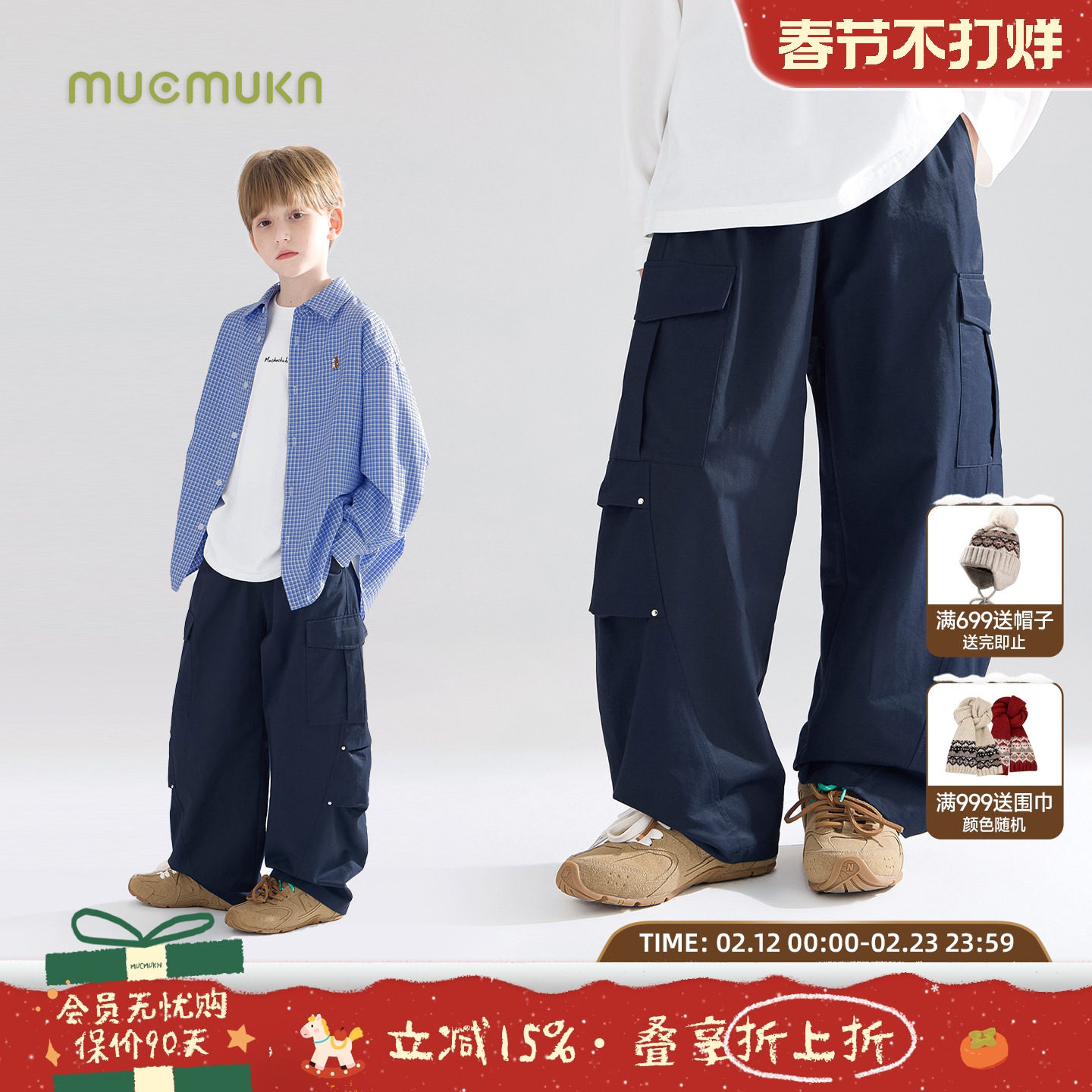 📚 MUCMUKN童装 秋冬新款长裤透气美式机能加厚弯刀裤工装裤子男女童