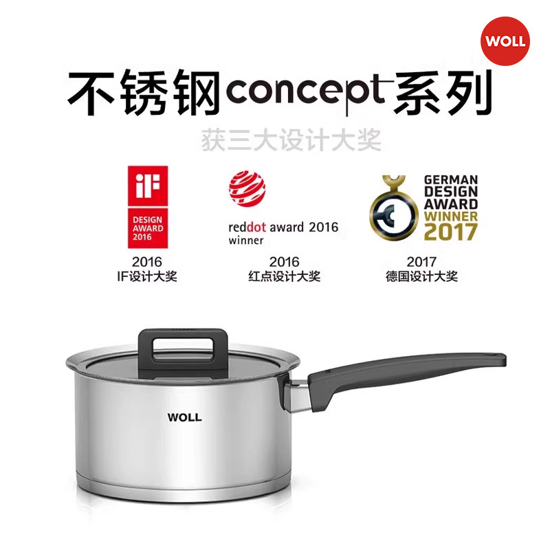 📚 德国WOLL奶锅小304不锈钢宝宝辅食婴儿泡面蒸煮泡面锅红点设计奖