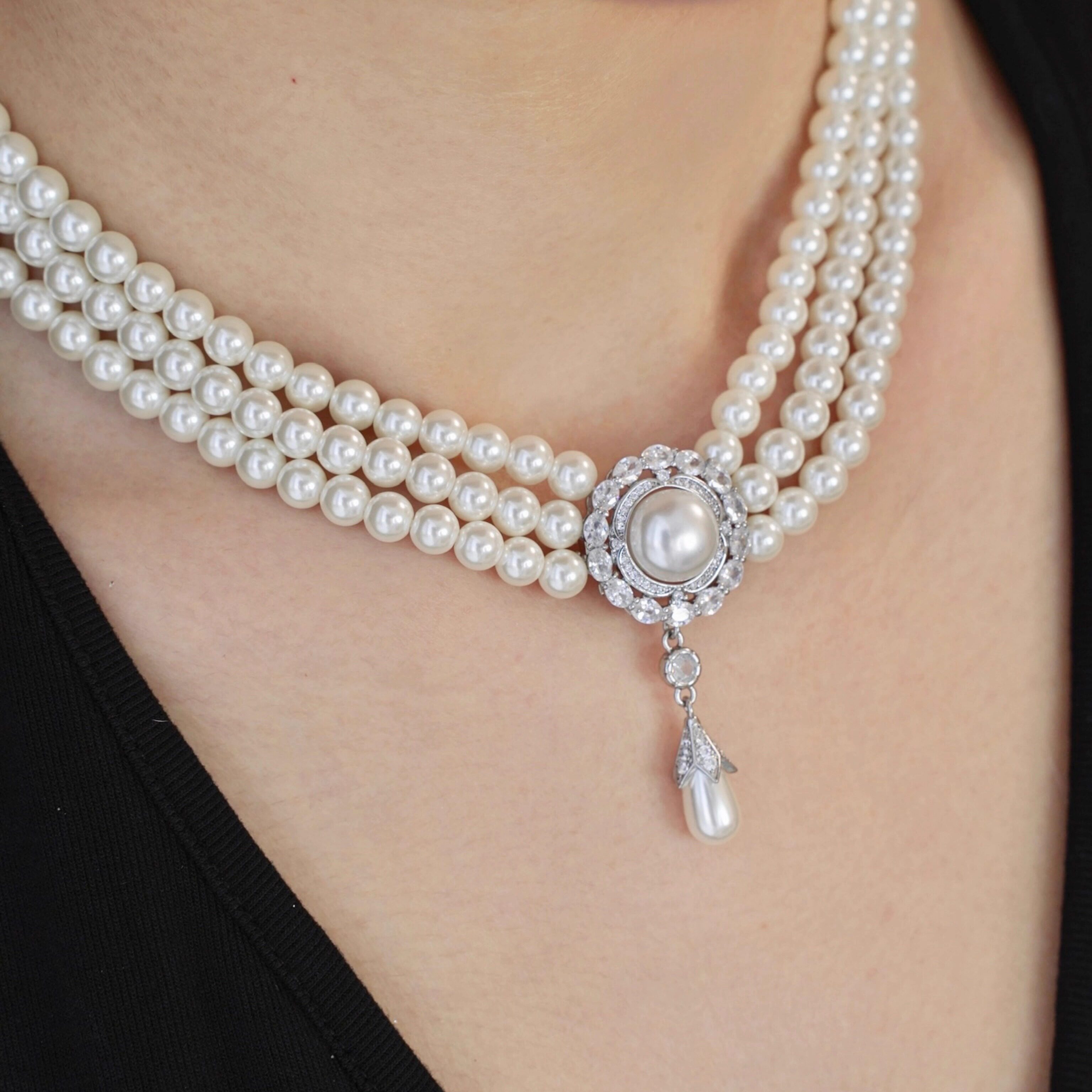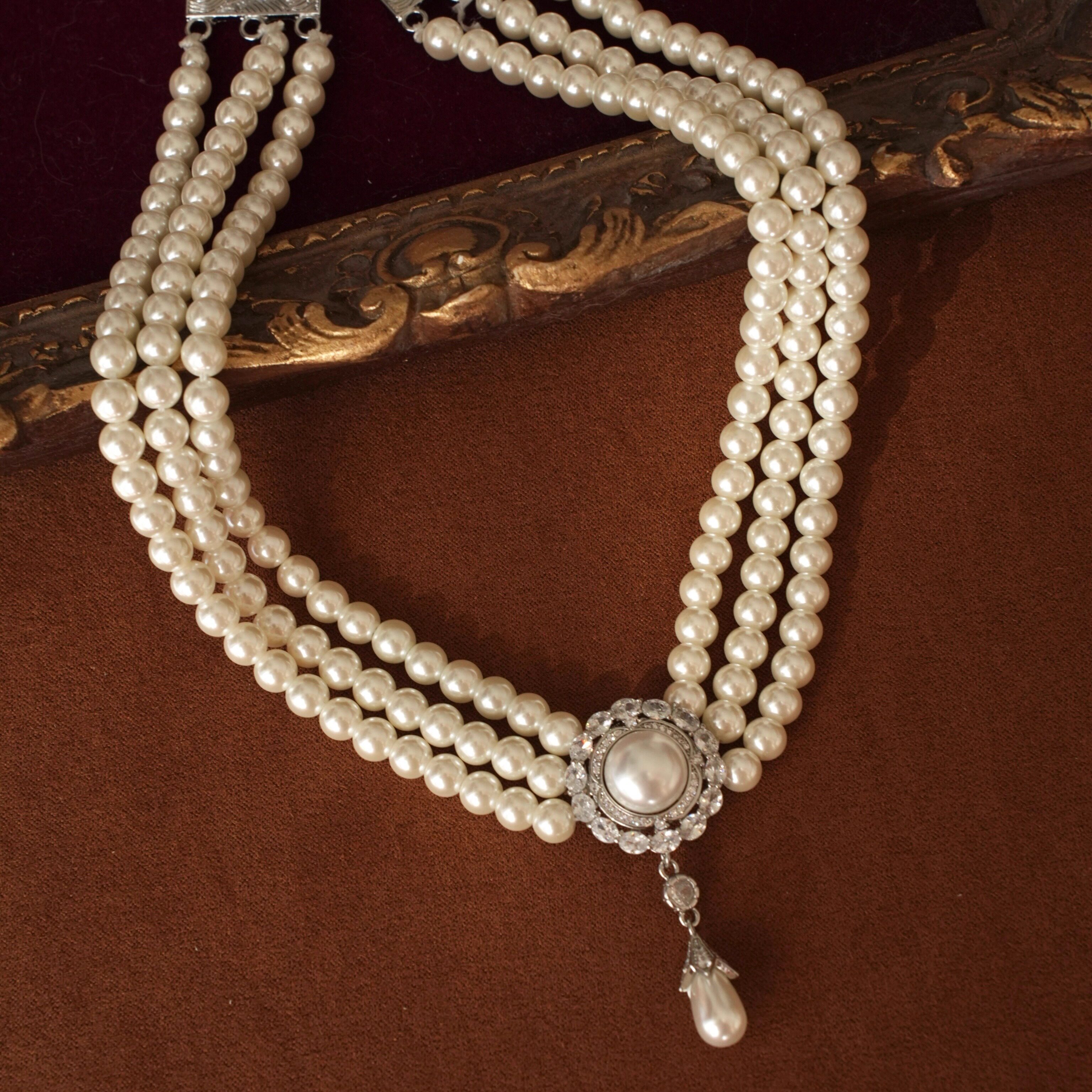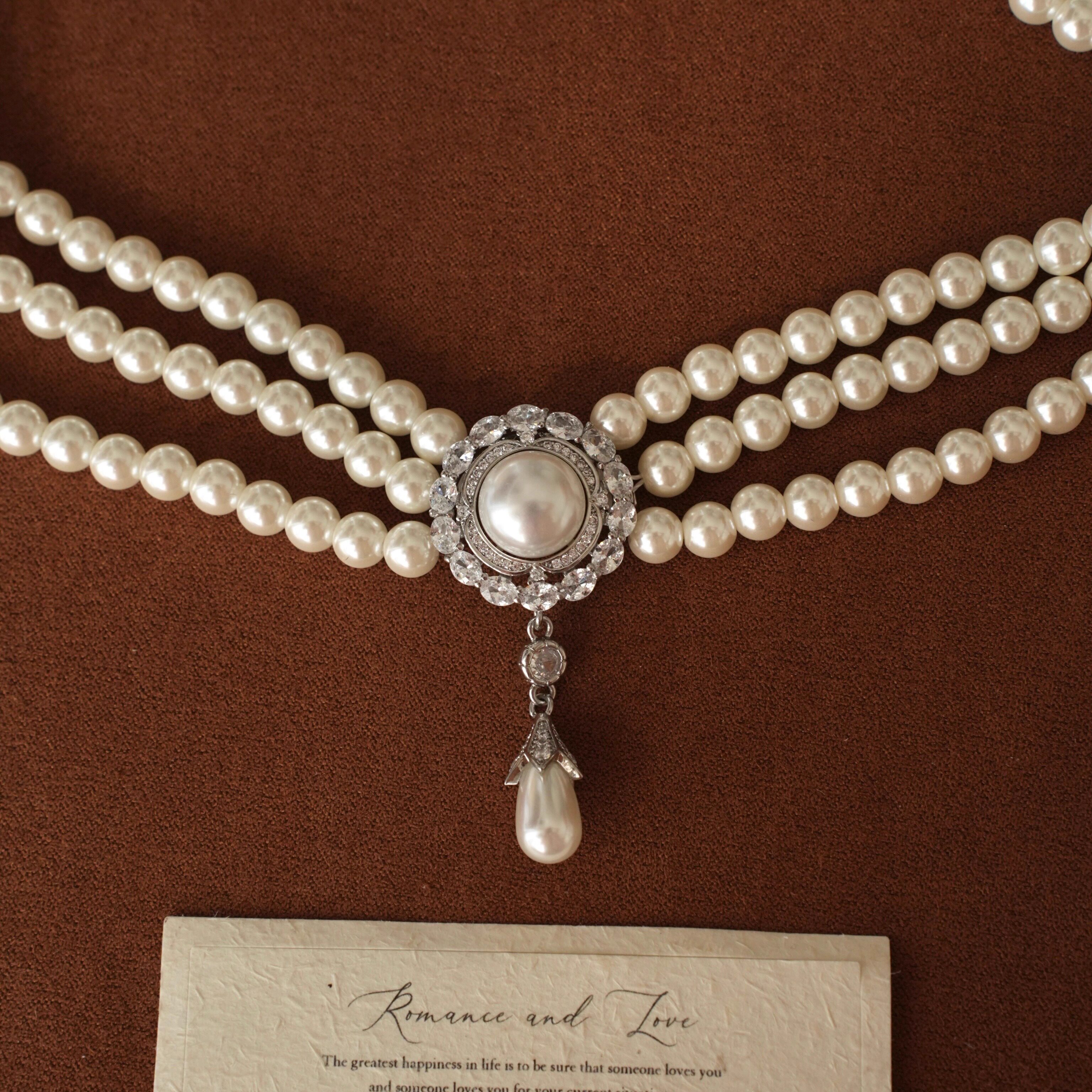 📚 「莫妮卡王妃」法式复古宫廷高级感奢华宴会多层珍珠项链/锁骨链