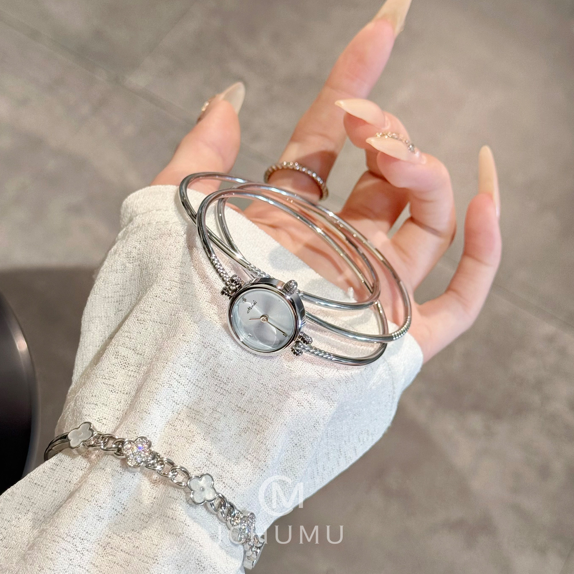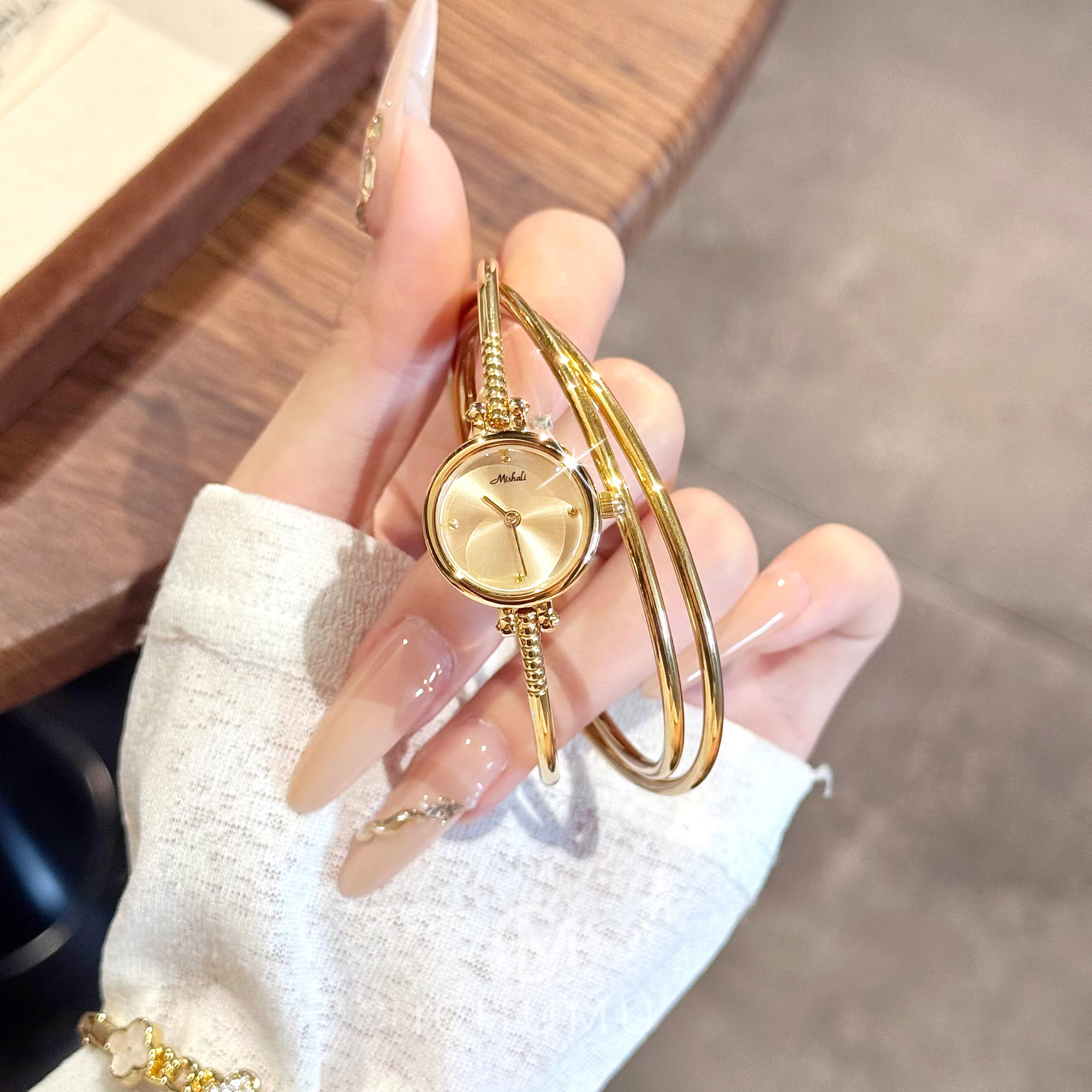📚 ICHUMU手表女手镯式手环表轻奢高级感时尚小众女士女款小表盘防水