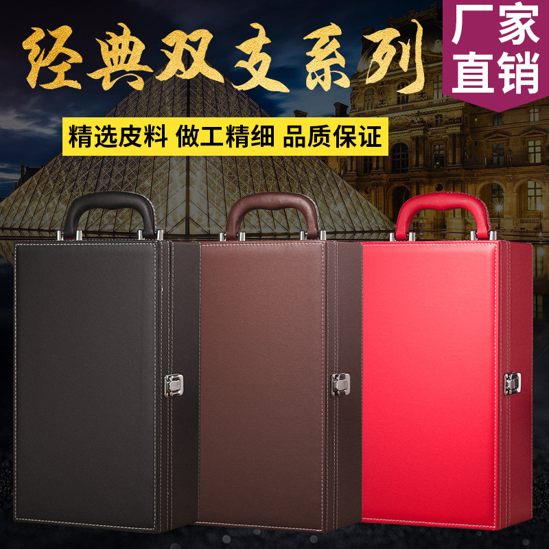 📚 红酒礼盒包装盒通用双支装红酒皮盒高档葡萄酒礼品盒子红酒箱定制