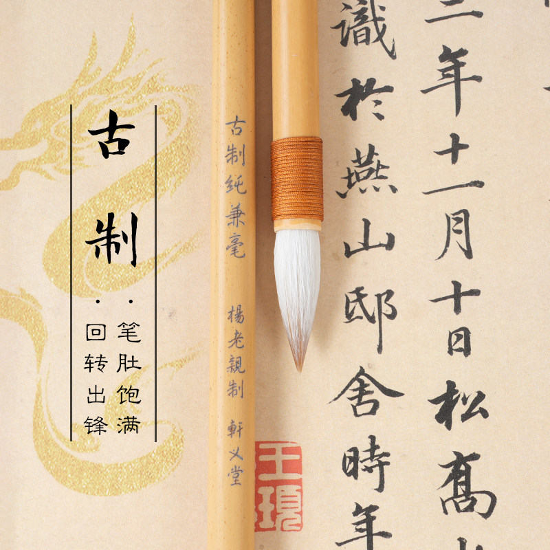 📚 轩义堂兼毫毛笔中号专业款初学者狼毫大楷中楷毛笔书法专用楷书行书隶篆国画专业级精品学生成人毛笔字练字笔