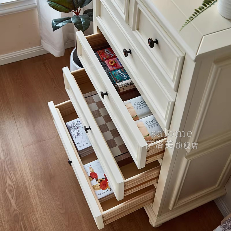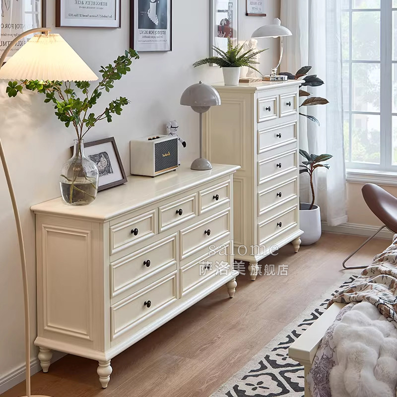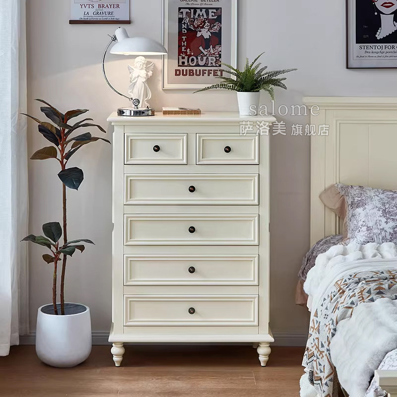 📚 萨洛美式实木斗柜五层六抽屉法式奶油白色小户型家具卧室电视机柜