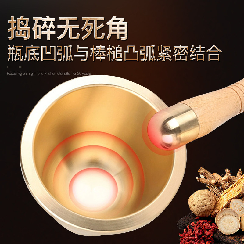 📚 湛派铜盅纯铜捣药罐捣蒜器蒜泥器捣碎器中药捣子药盅药臼药缸研钵