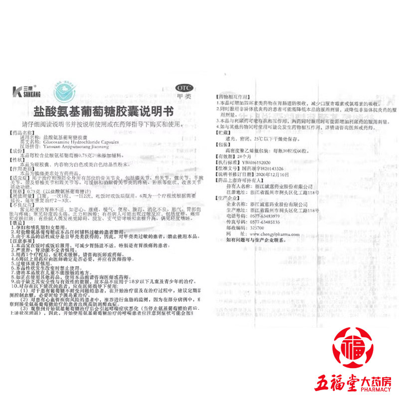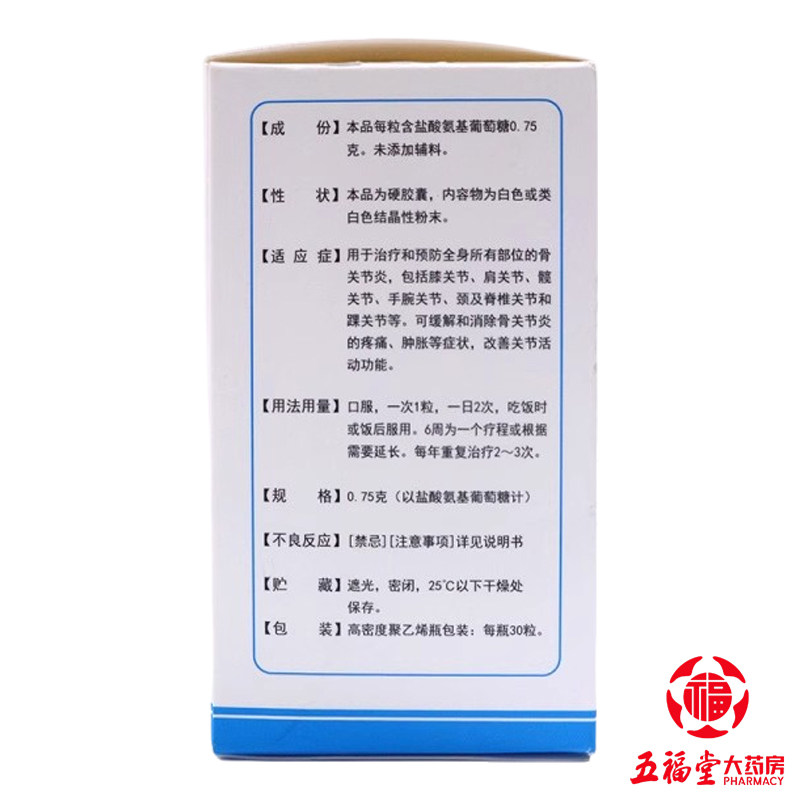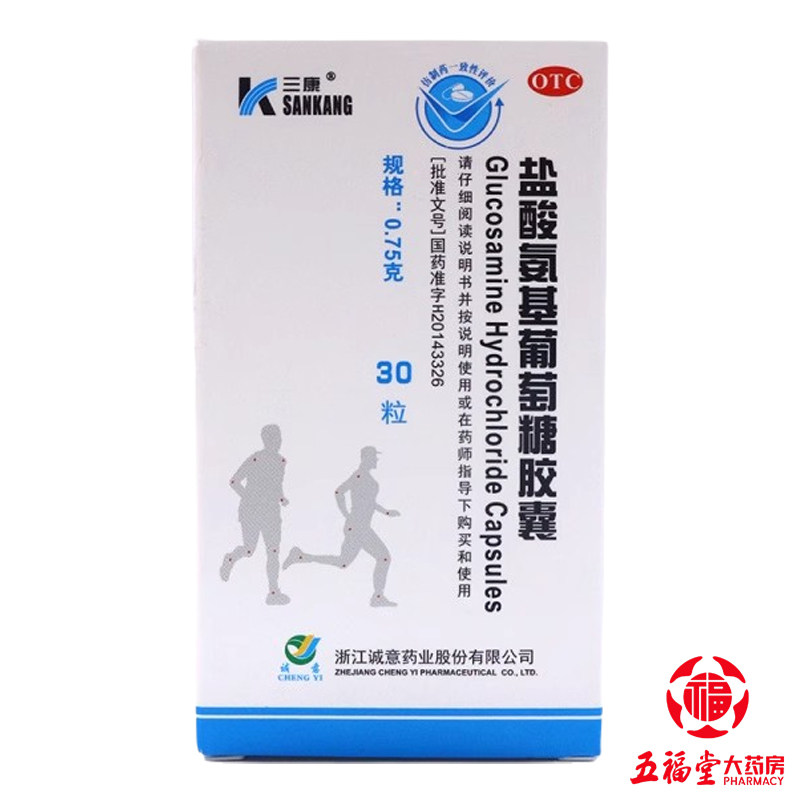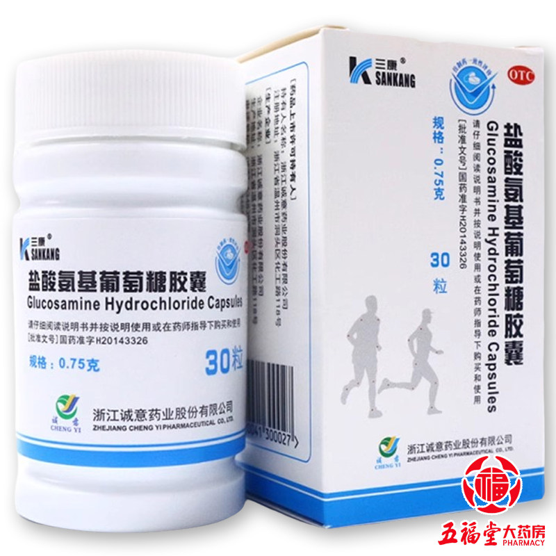 📚 三康盐酸氨基葡萄糖胶囊0.75g*30粒骨关节炎膝关节缓解软骨钙中老