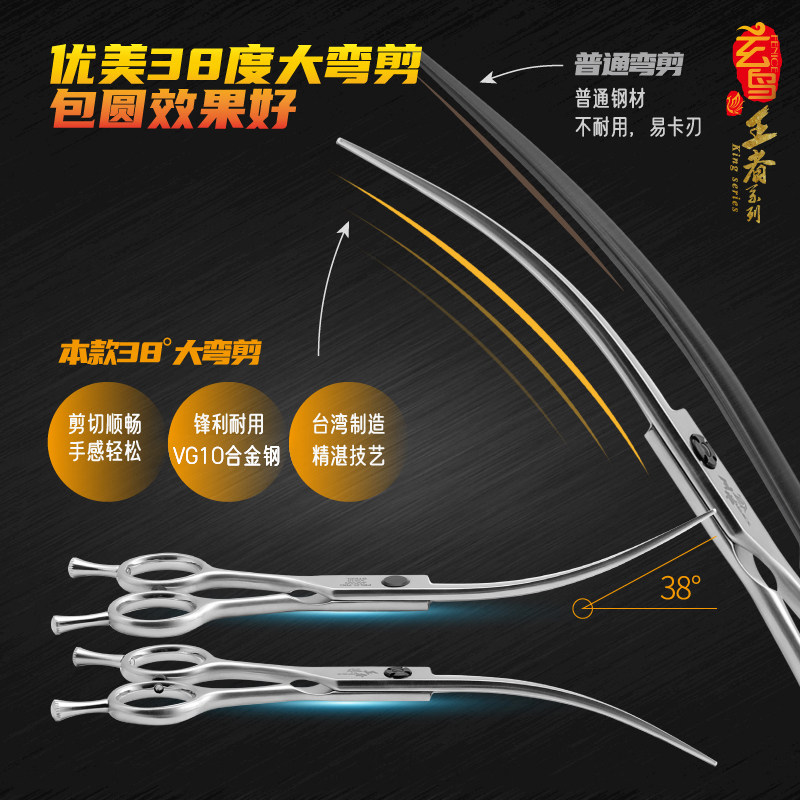 📚 左手玄鸟王者宠物美容剪刀直剪弯剪美容师专业品牌店用套装VG10钢