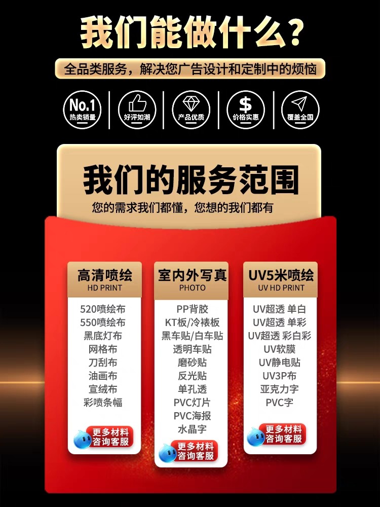📚 深圳定制广告喷绘写真车贴纸展架UV软膜刀刮布亚克力磨砂纸油画布