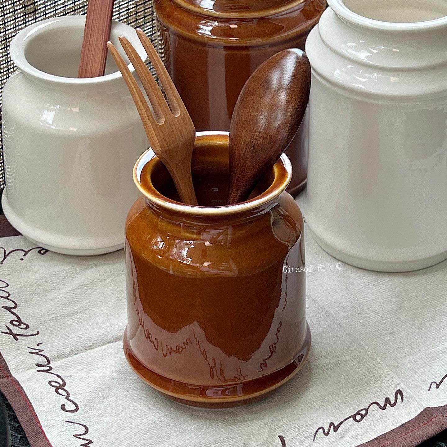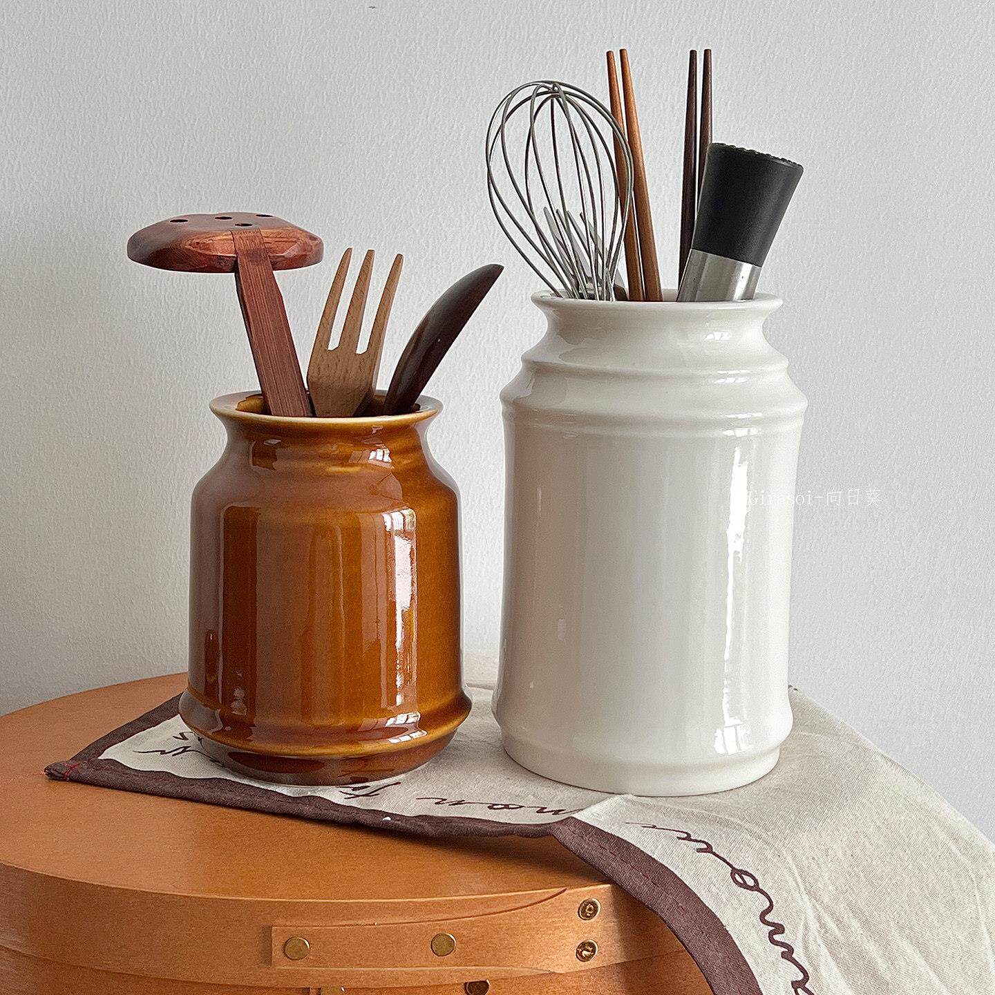 📚 筷子筒陶瓷日式覆古台面勺子厨房好看的高档餐具储物罐笔筒收纳盒