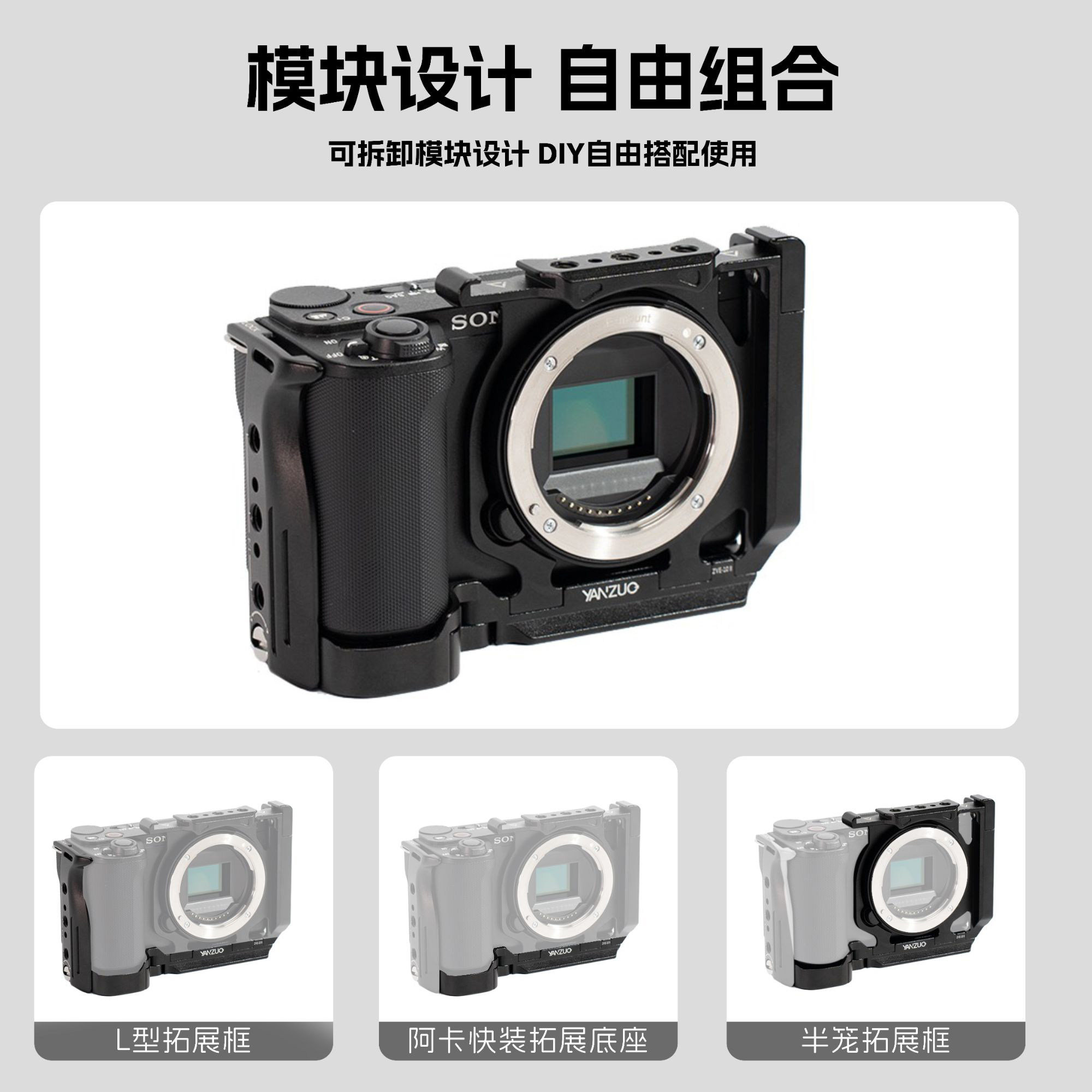 📚 颜左 索尼ZVE10M2二代相机兔笼稳定器竖拍L快装板拓展保护框配件