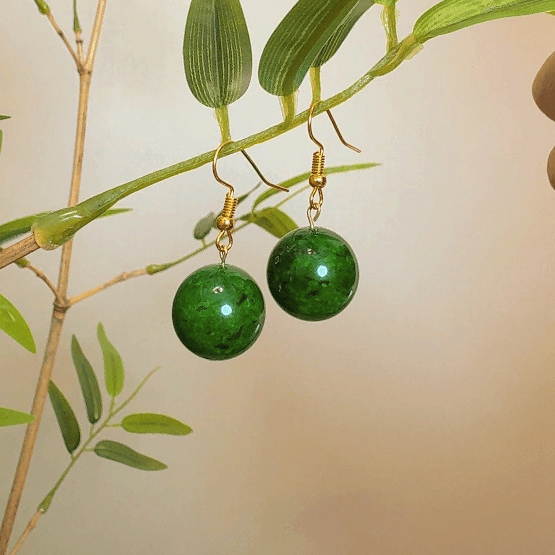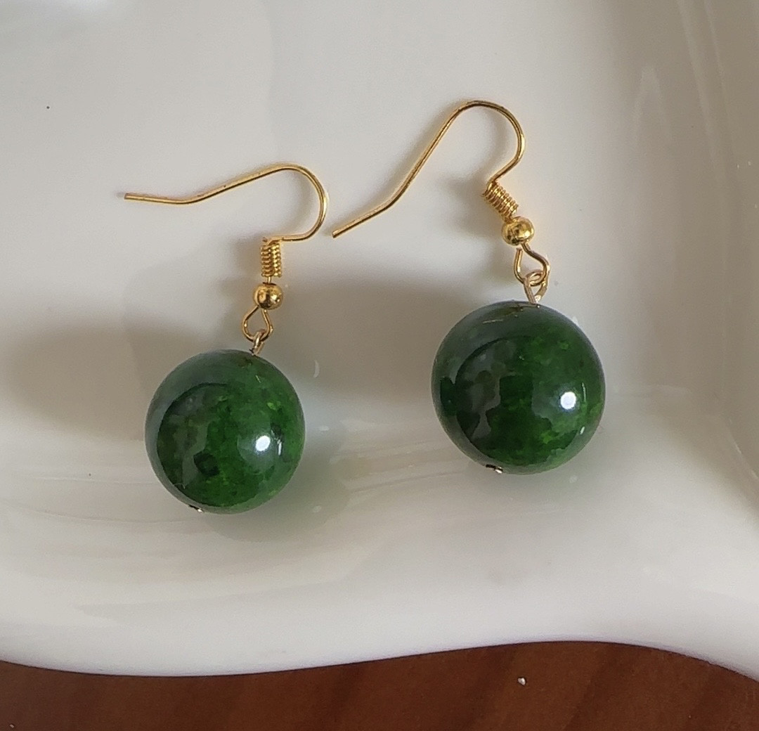 📚 小众设计感新款百搭中式国风纹路绿珠耳环气质耳饰