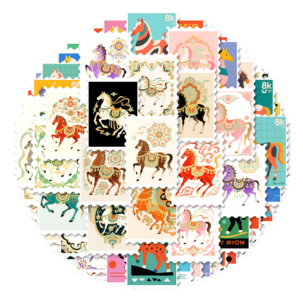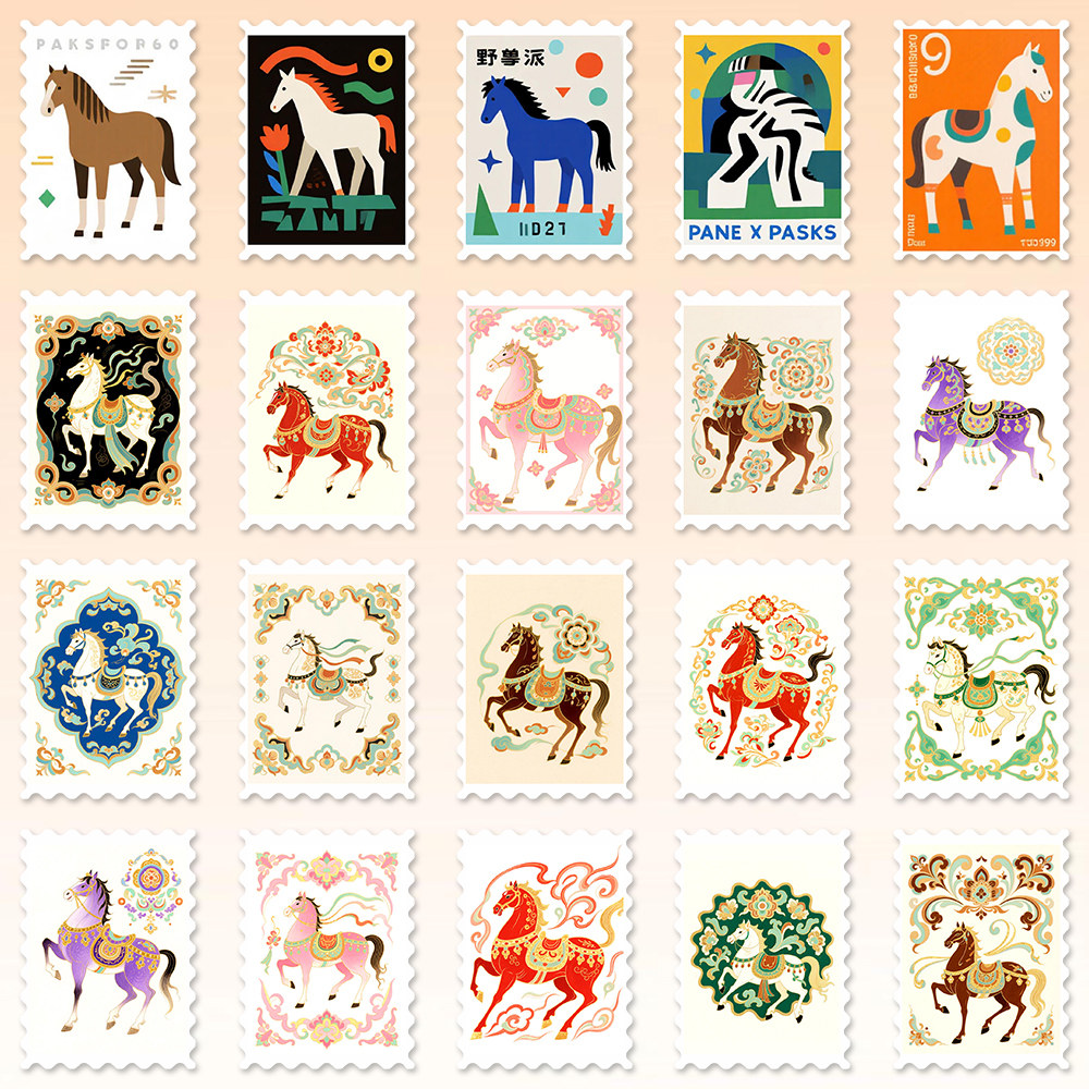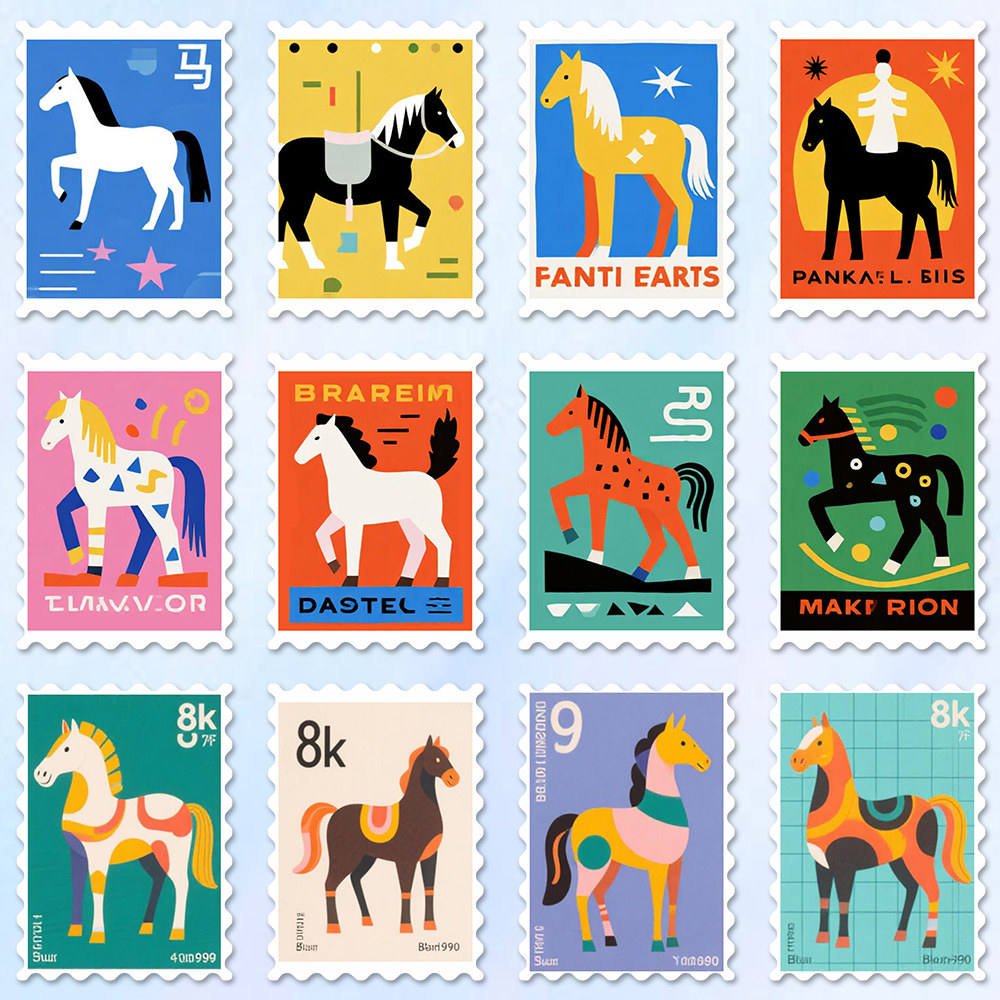 #马年邮票贴纸 #新年装饰 #小众设计 #巴胺马元素 #DIY装饰贴画