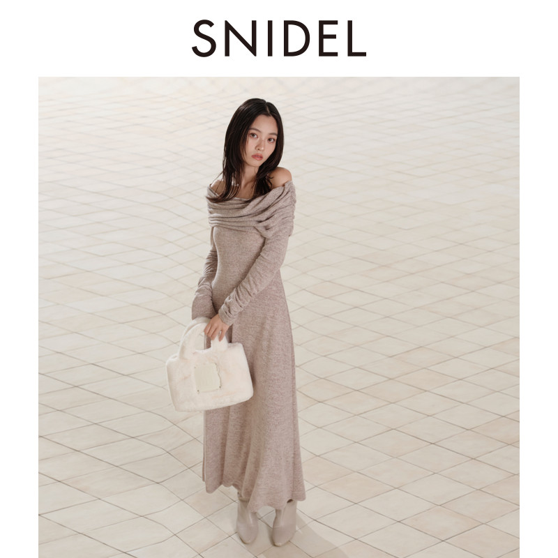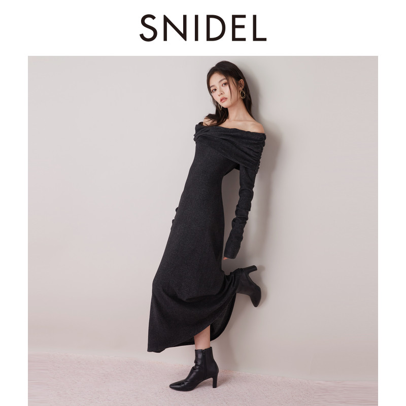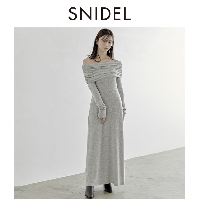 📚 SNIDEL秋冬款气质修身长裙翻领露肩针织连衣裙SWCO245060