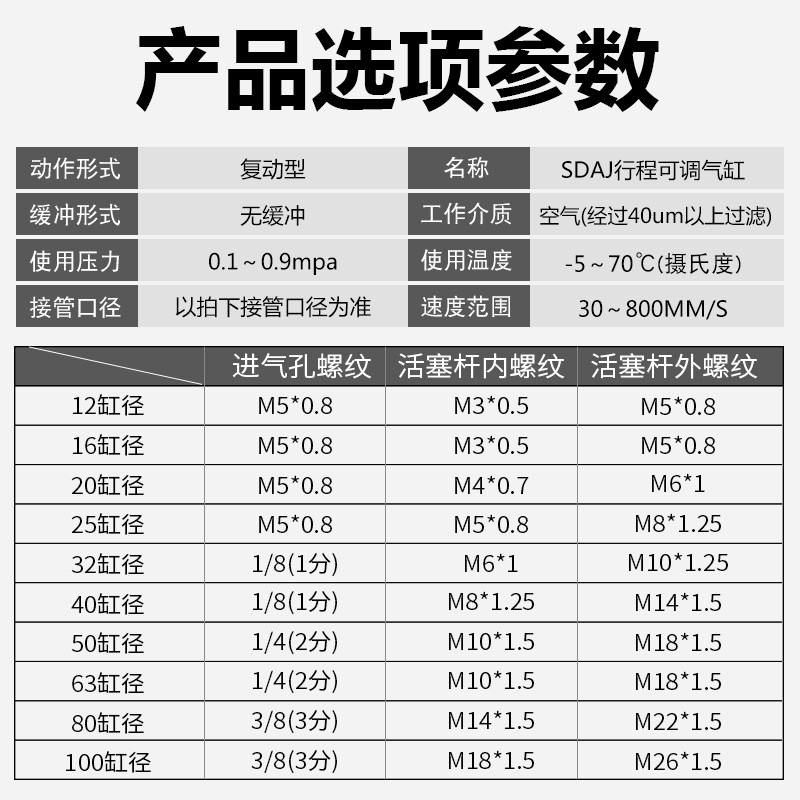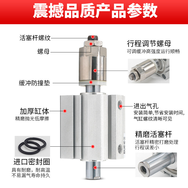 📚 小型气动可调行程薄型气缸SDAJ20/25/32/40/50/63x20-30-50-75-S