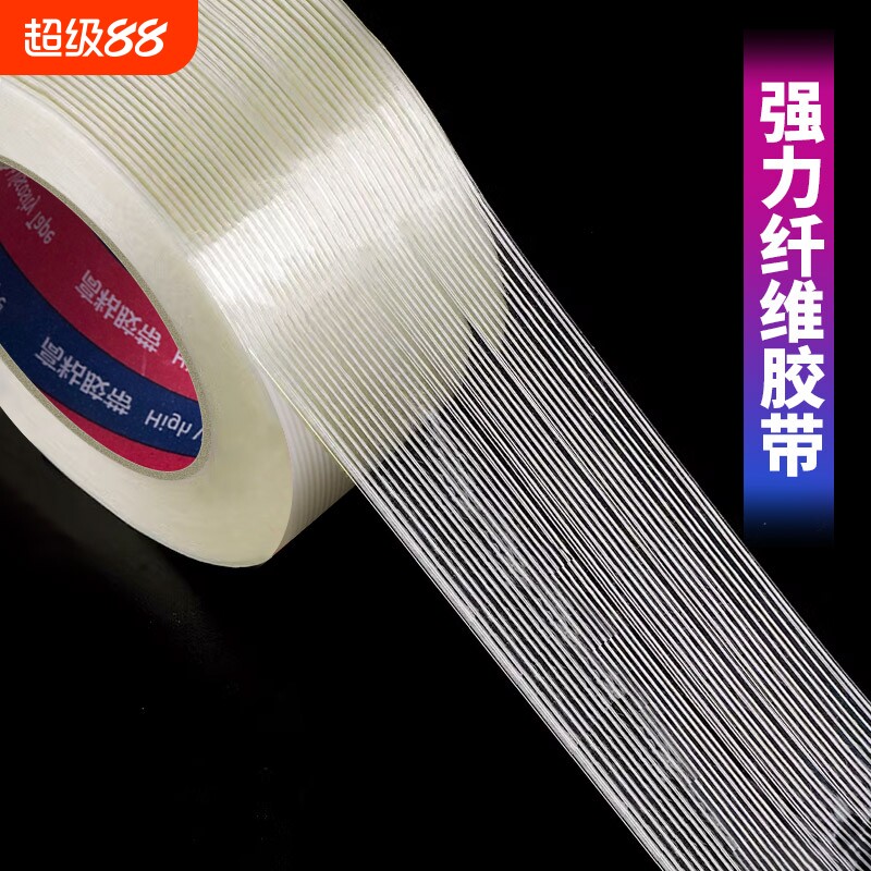 📚 透明玻璃纤维胶带强力条纹航模绑筋单面胶飞机模型固定抗拉捆绑单面封箱批发锂电池包扎防水网格粘贴打包