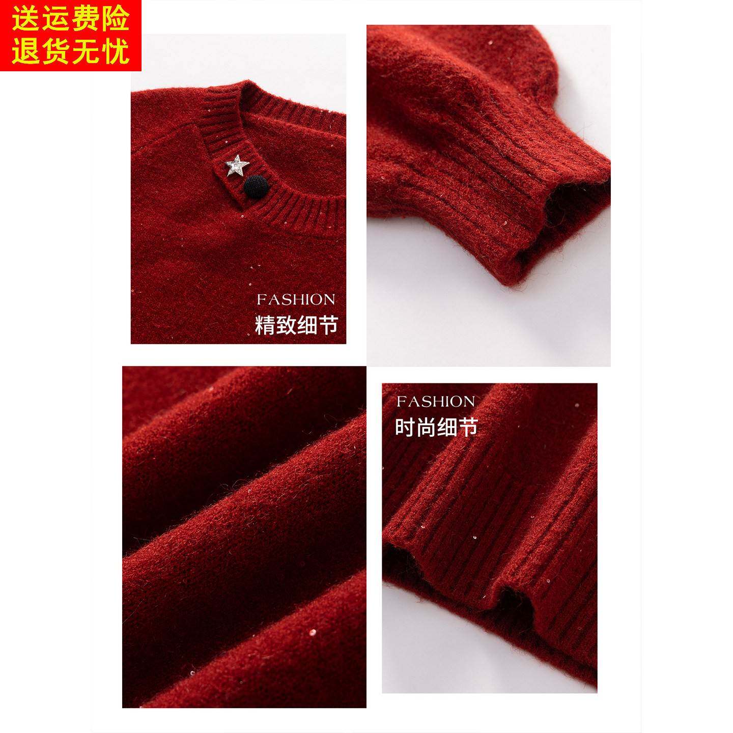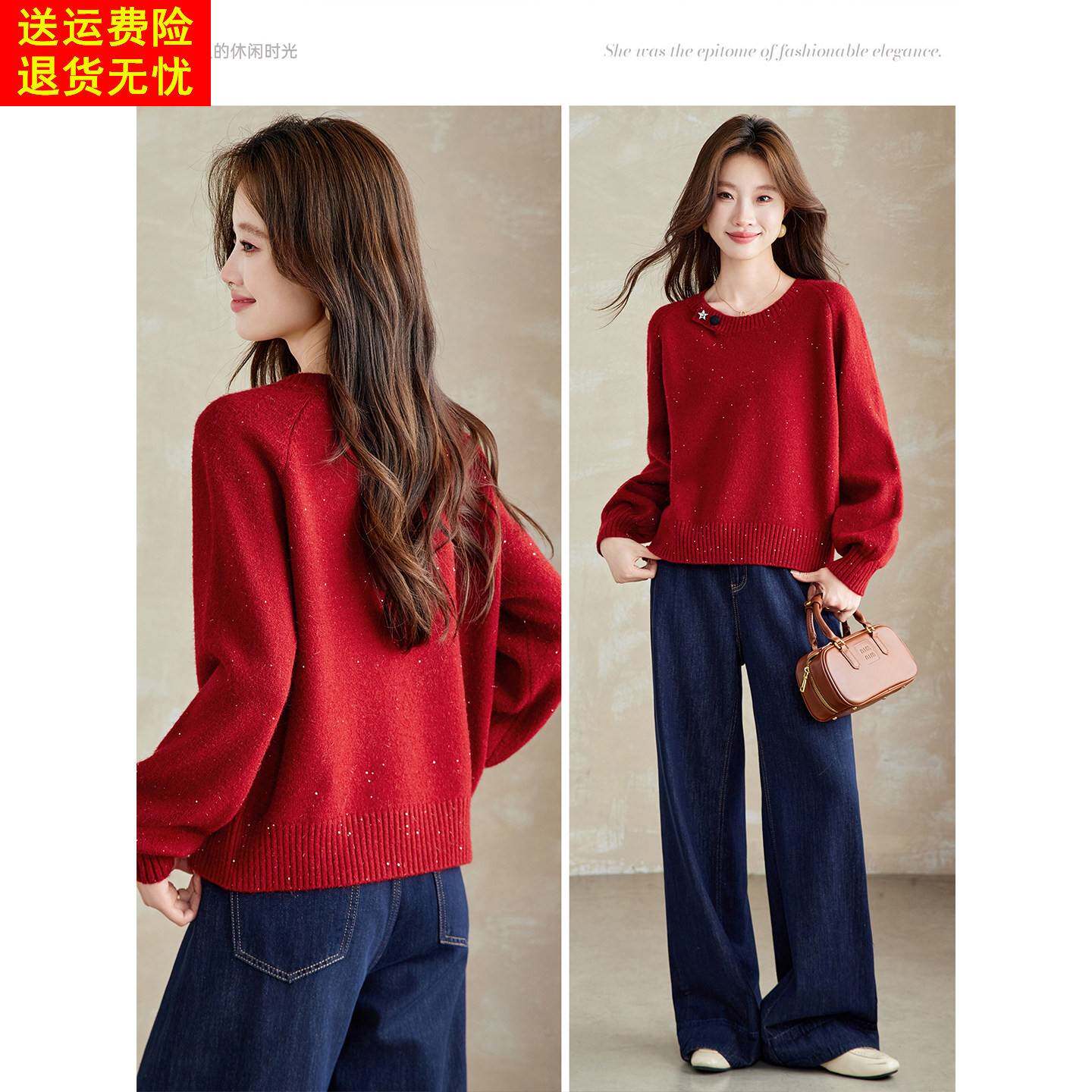 📚 亮闪闪满天星亮片针织衫上衣女2025新款秋冬季宽松红色毛衣打底衫