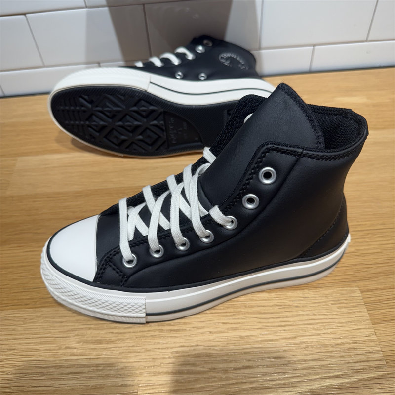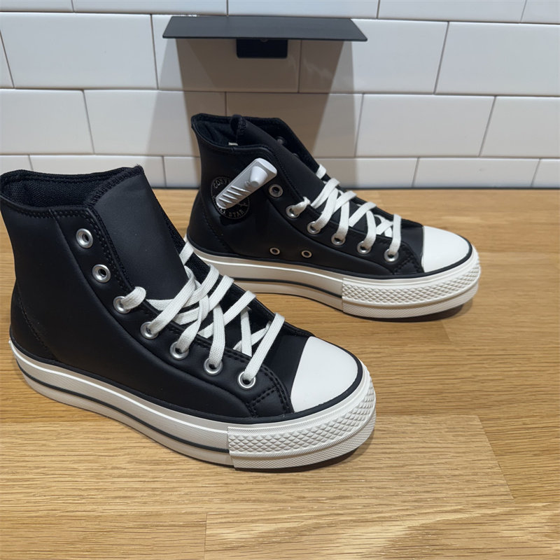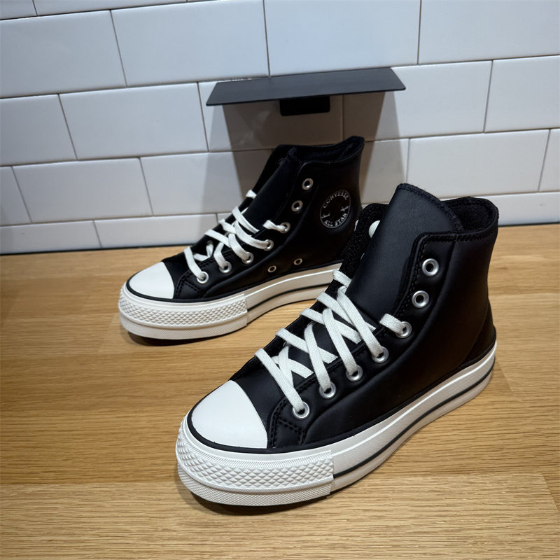 📚 CONVERSE匡威All Star Lift女子黑色皮质厚底高帮增高板鞋A11160C