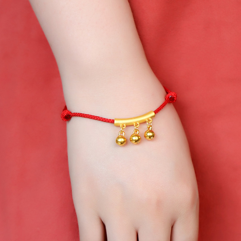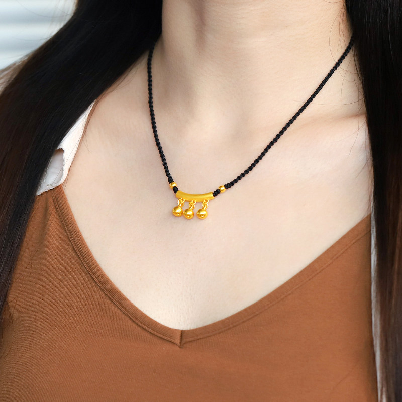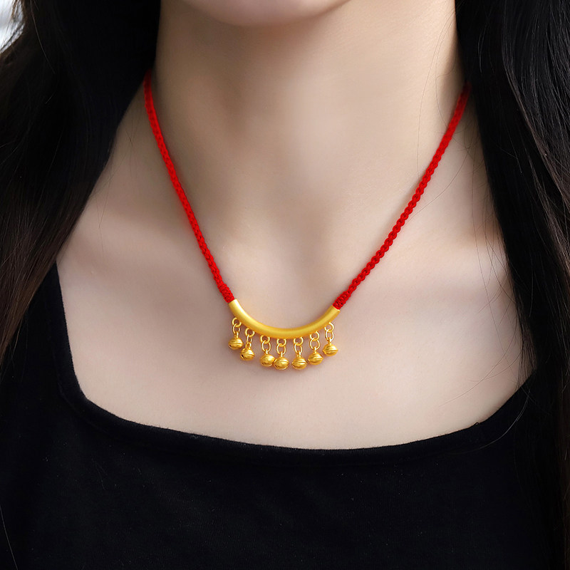 📚 黄金弯管铃铛吊坠999足金3个铃铛编绳手链女士3D硬金挂坠纯金项链