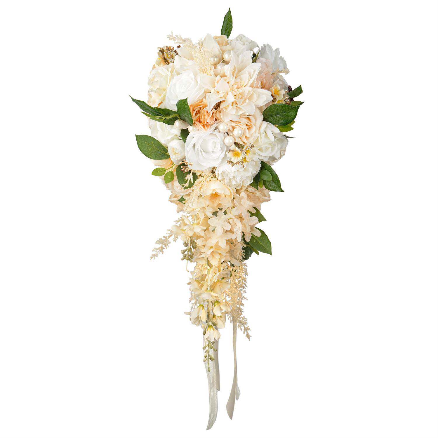 📚 热销爆款香槟色水滴款瀑布手捧花新娘婚礼出场手捧花束轻奢