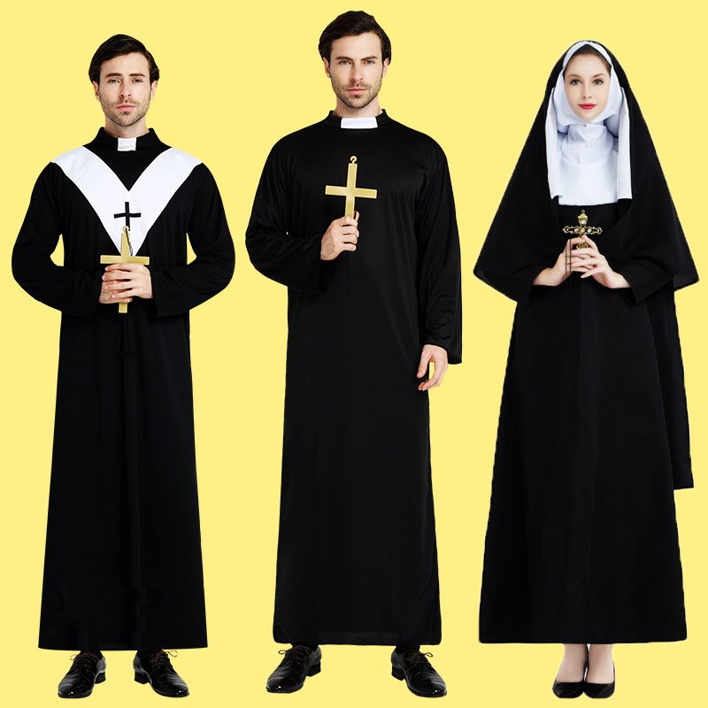 📚 万圣节cos修女服装神父牧师长袍传教士男女大人成黑暗风反差恐怖