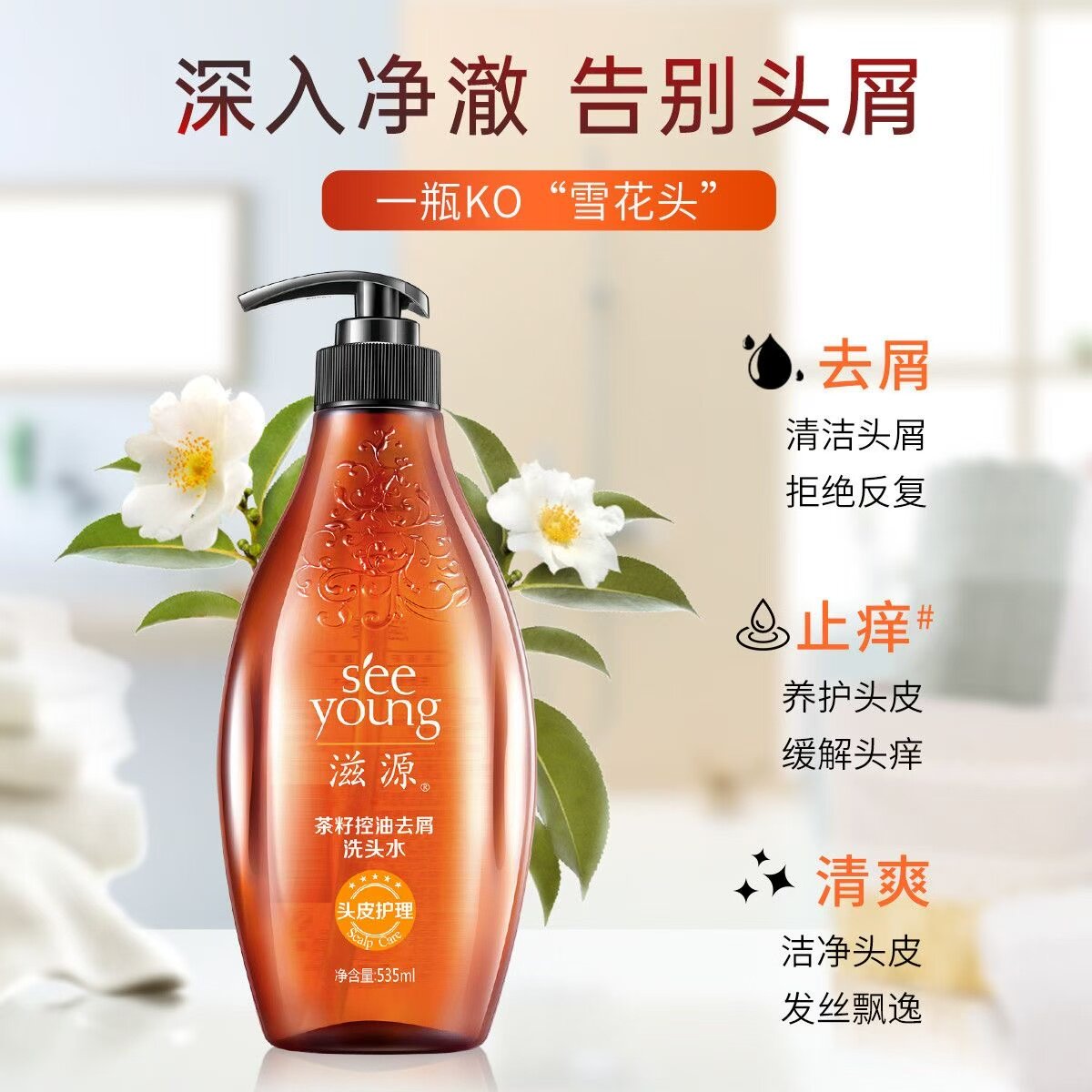 📚 滋源535ml无硅油控油洗发水大容量洗头水蓬松清爽柔顺轻盈秀发