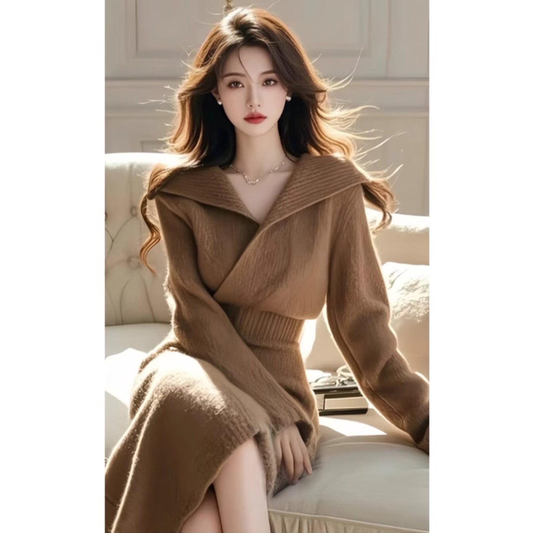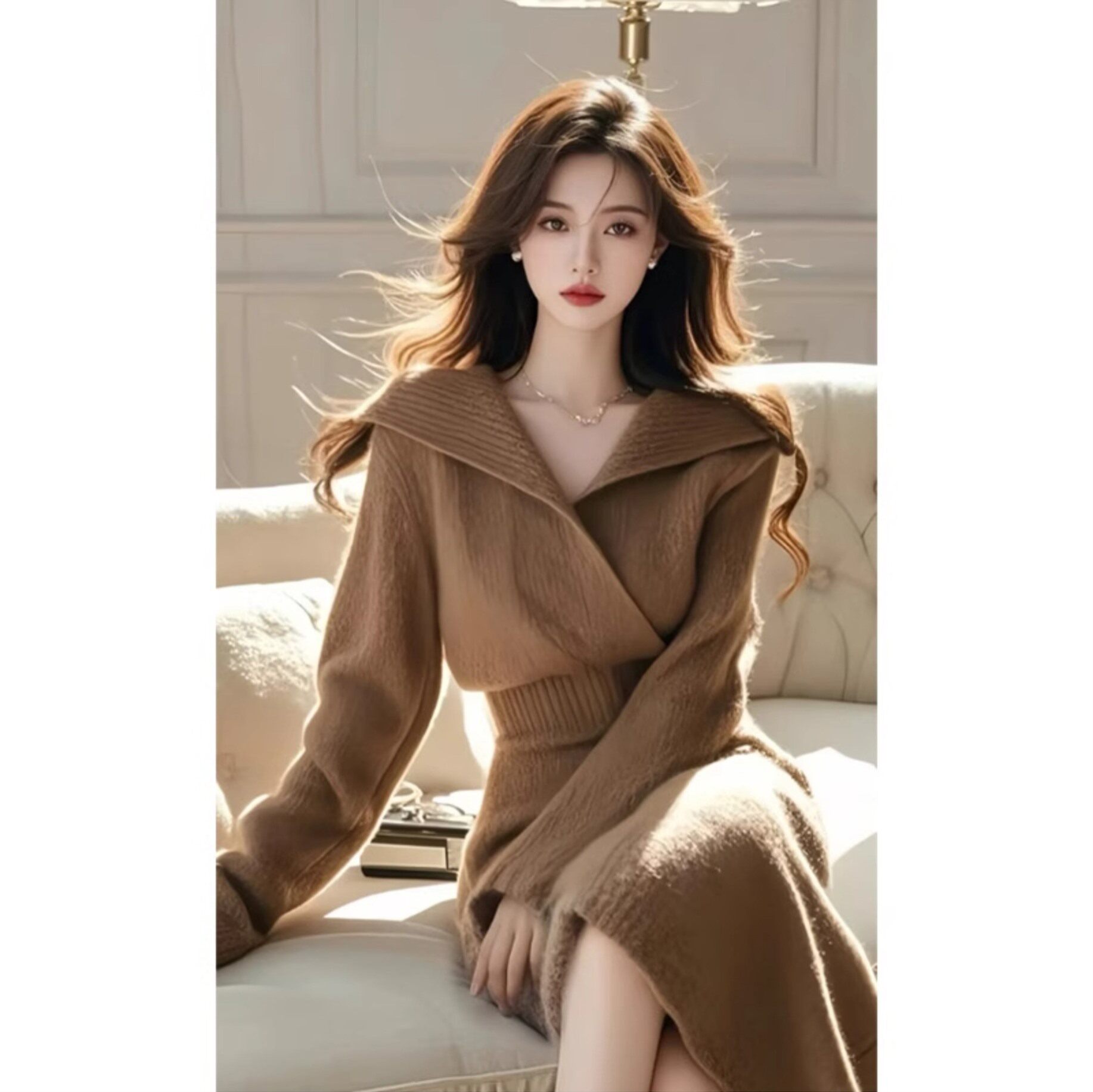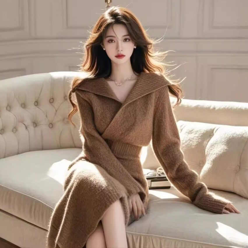 📚 深秋初冬穿搭外套独特女人味翻领高级感穿搭咖色针织上衣裙子套装