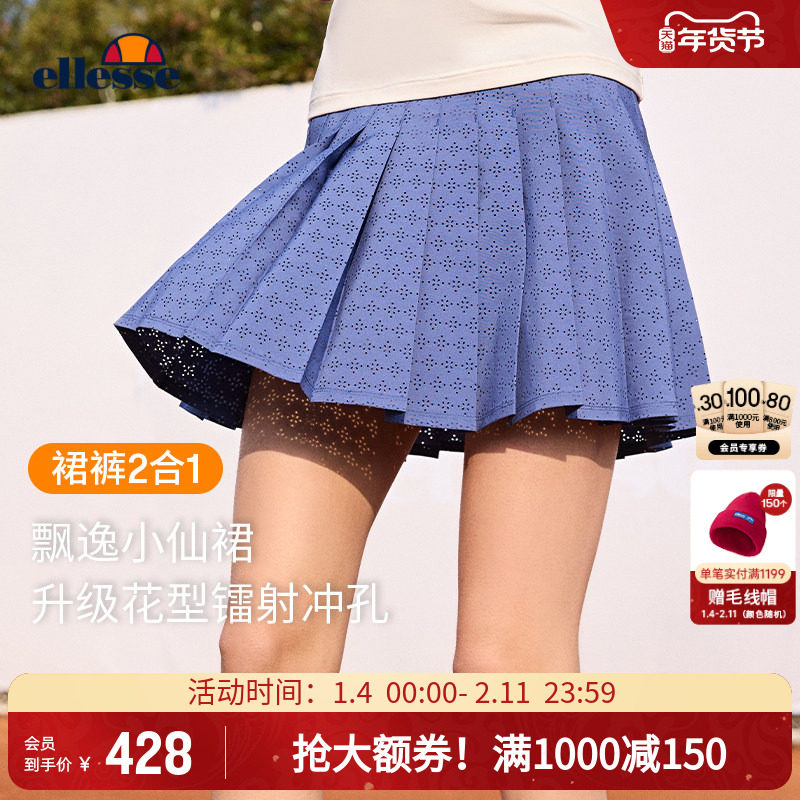📚 【乔欣同款】ellesse小贝壳网球半裙透气运动白色防走光A字短裙