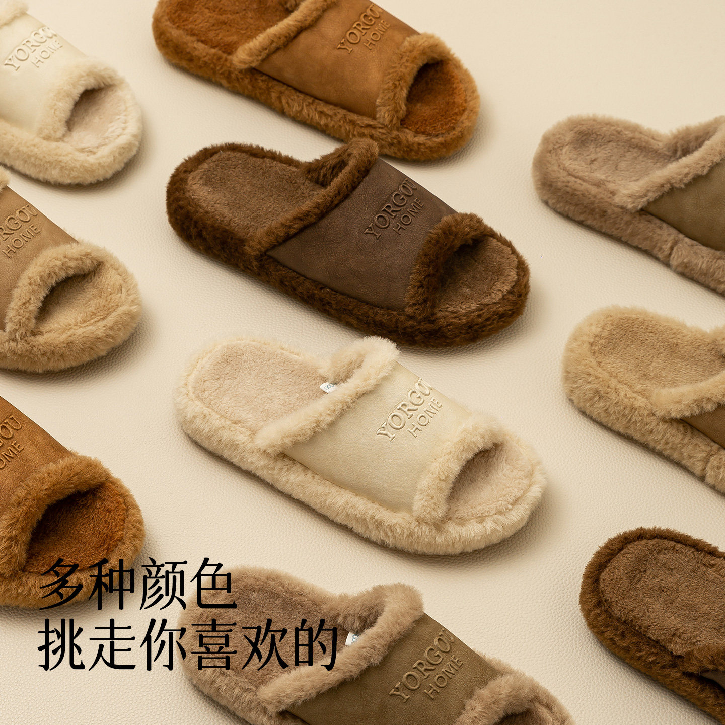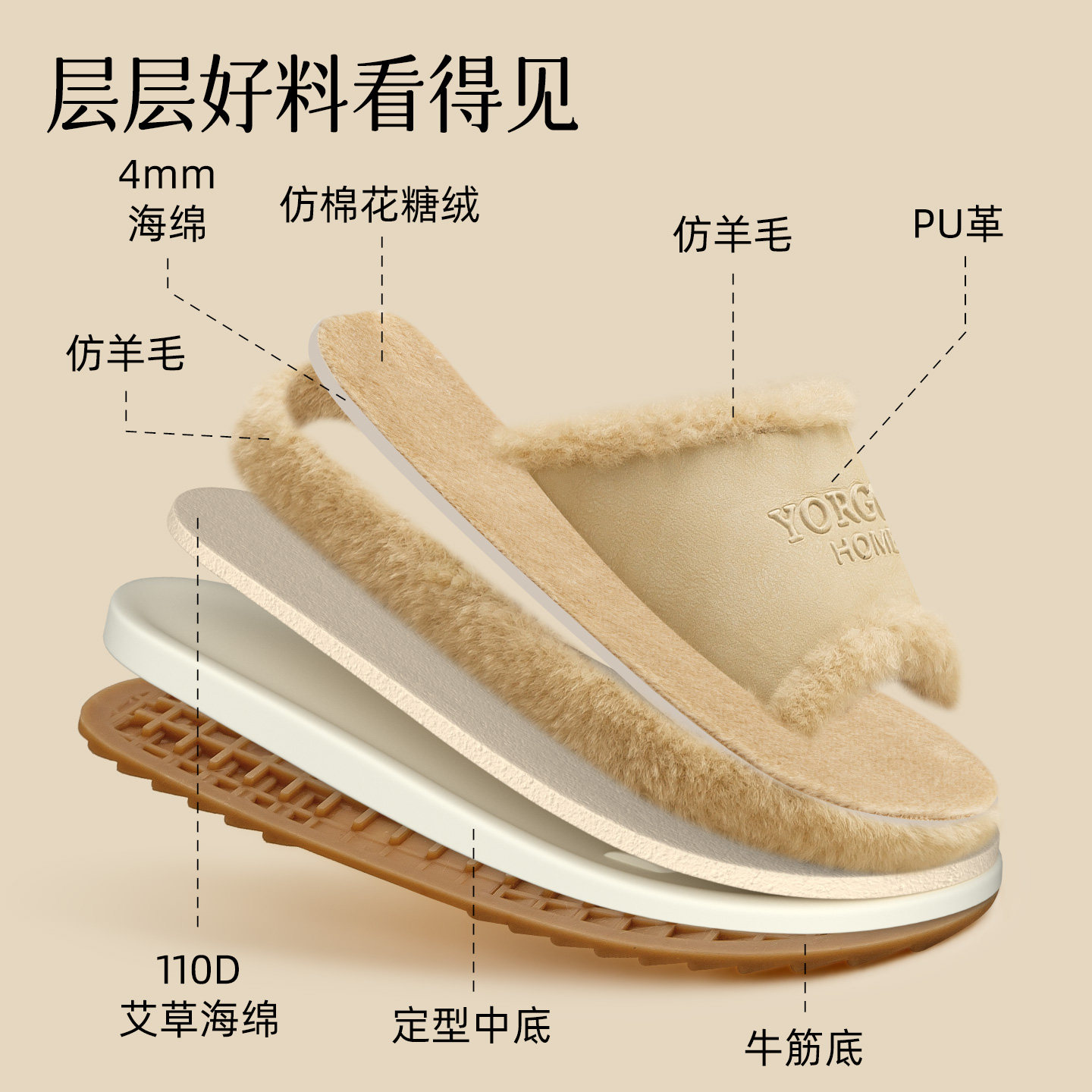 📚 远港新款时尚高档皮革棉拖鞋女秋冬办公室内居家厚底可外穿毛拖鞋