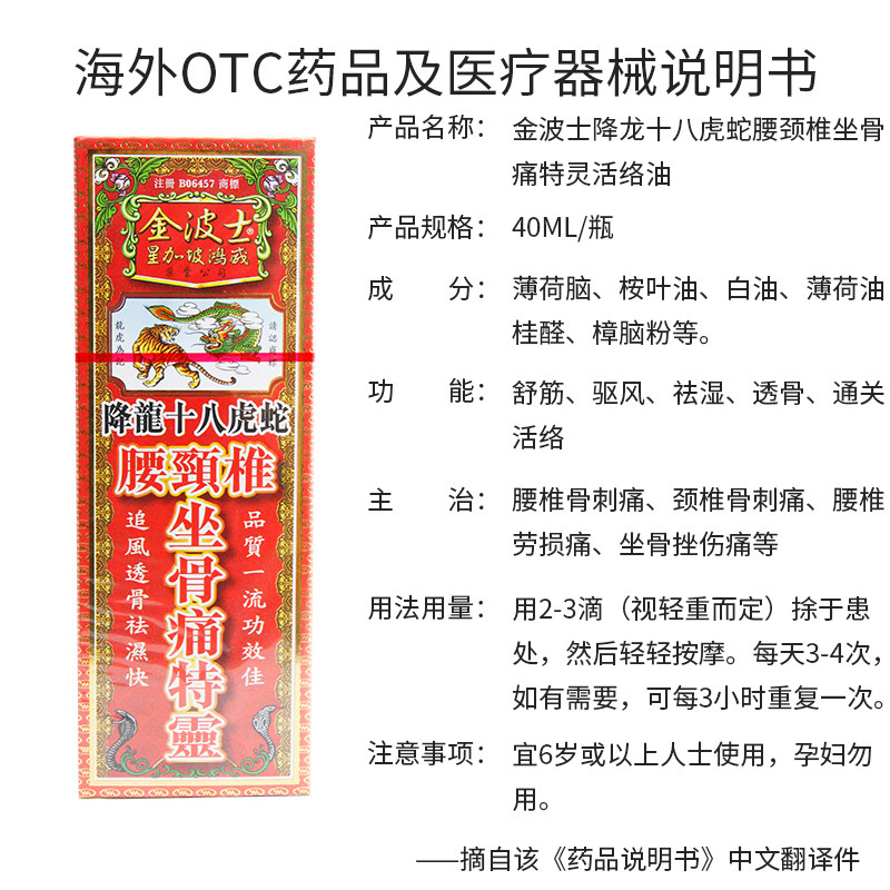 📚 万宁金波士降龙十八虎蛇腰颈椎坐骨痛特灵原装跌打活络油香港正品