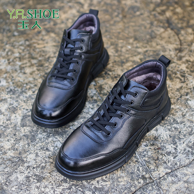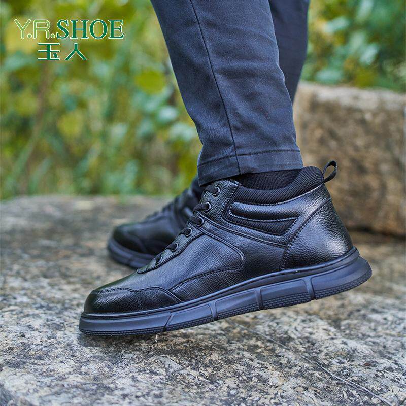 📚 江苏玉人冬季运动皮鞋男真皮加绒保暖软底高帮休闲鞋