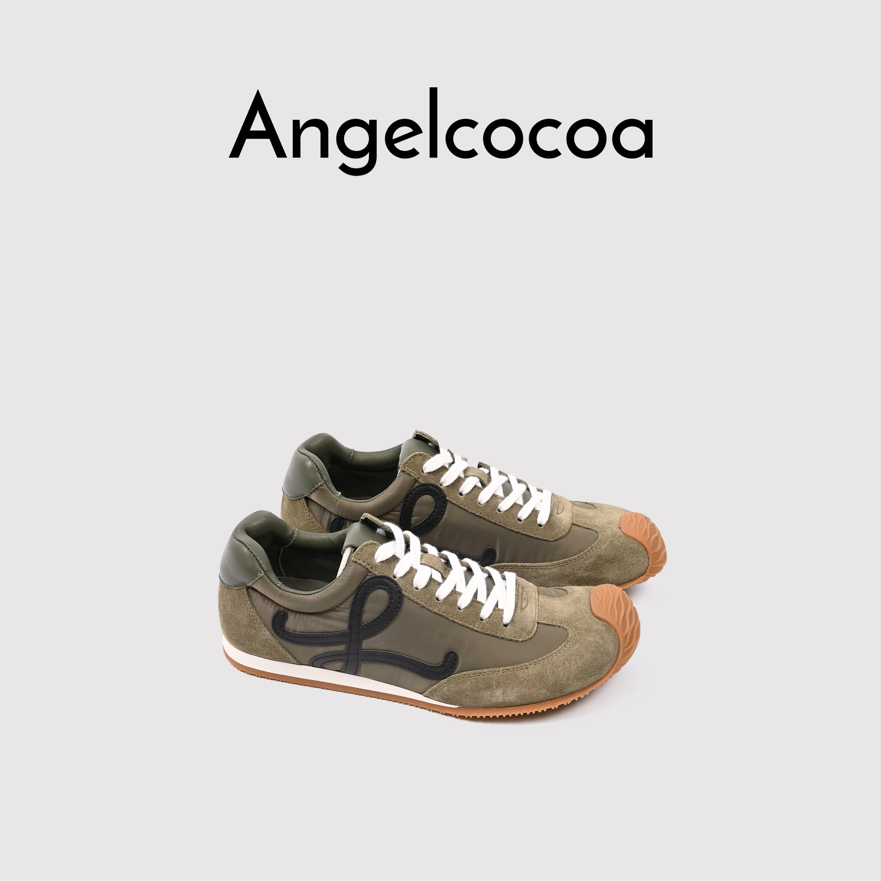📚 日本Angelcocoa德训鞋拼色歪头鞋男女情侣休闲运动真皮平底鞋
