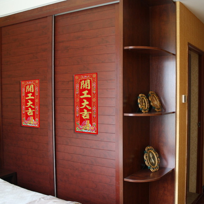 📚 开业动工开工大吉门贴横幅兴工大吉贴纸装修贴植绒对联红纸小挥春