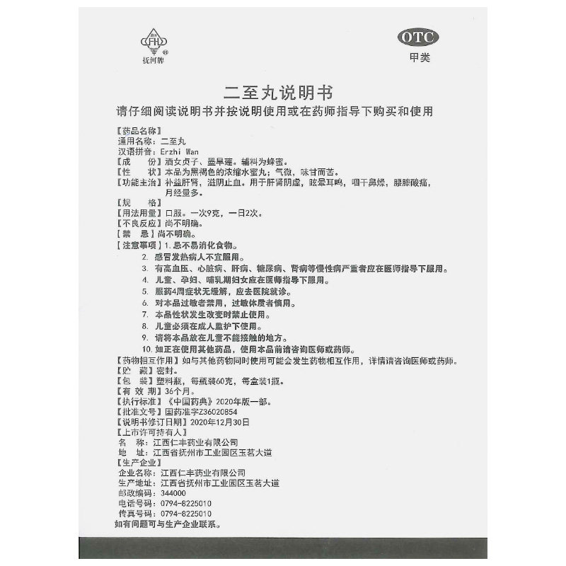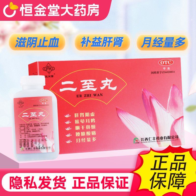 📚 仁丰抚河二至丸60g/盒fs月经量多止血药肾虚中成药女士