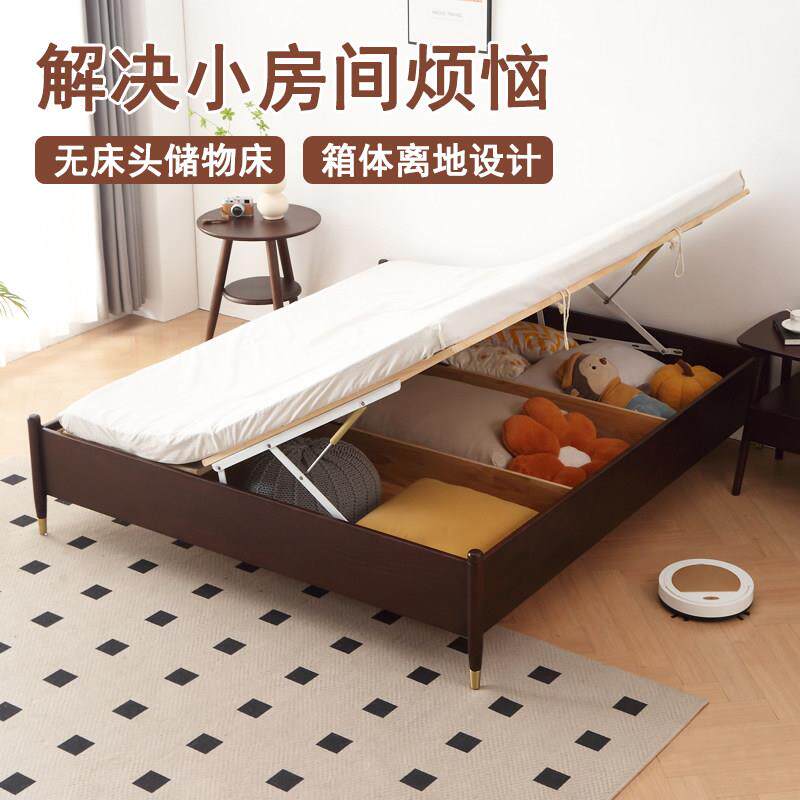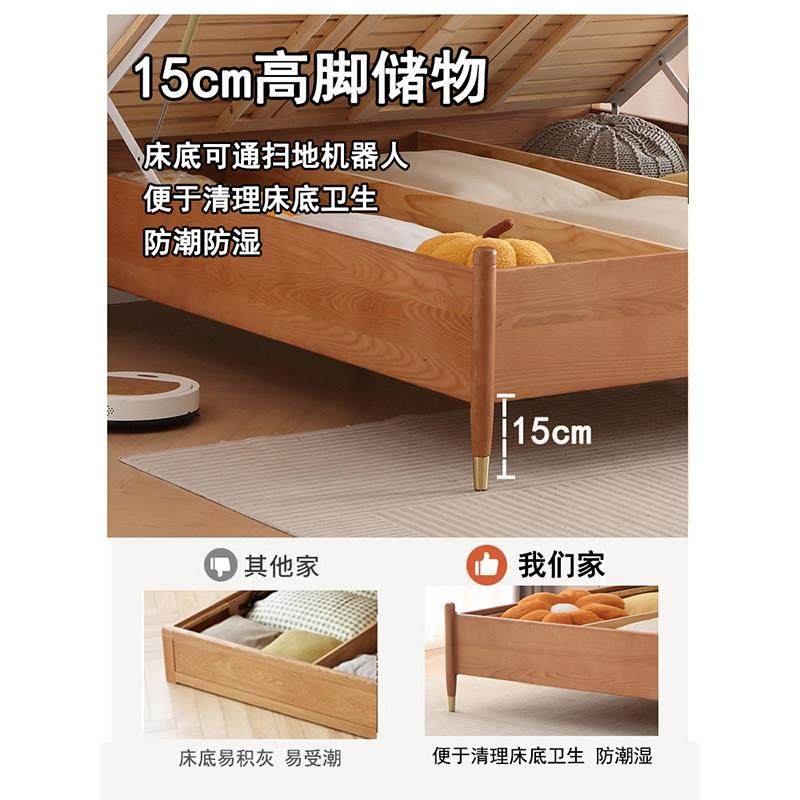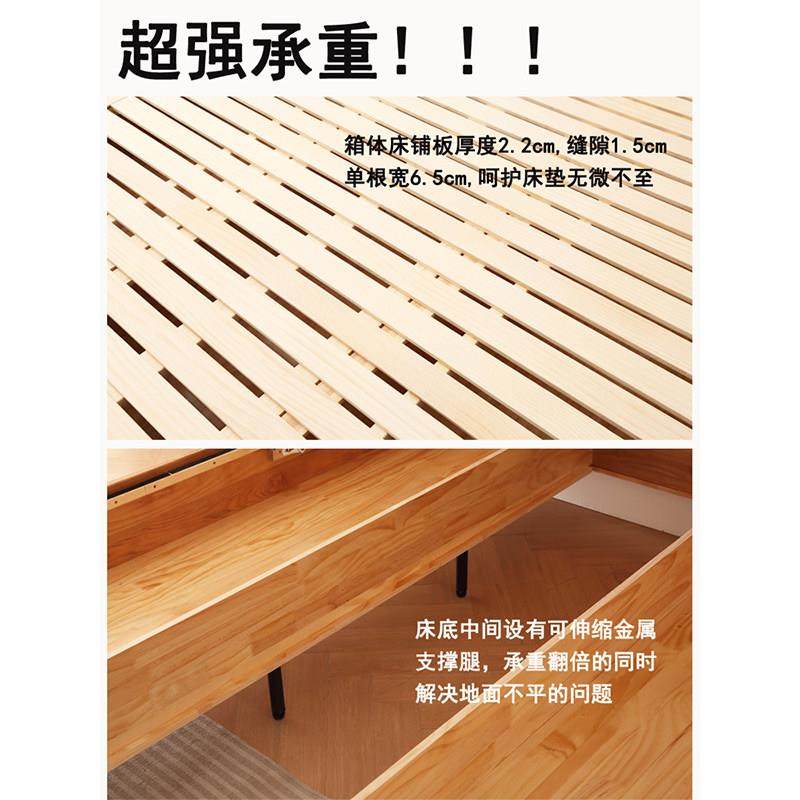 📚 一米2无床头135长190气压8高脚箱体离地榻榻侧开储物白蜡木实木床