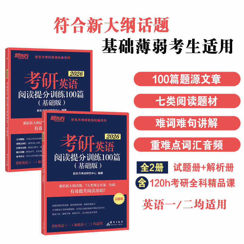 📚 【现货】新东方2026考研阅读 26考研英语阅读提分训练100篇基础强化版阅读200篇 英语阅读考研英语一二阅读真题搭颉斌斌阅读句句讲