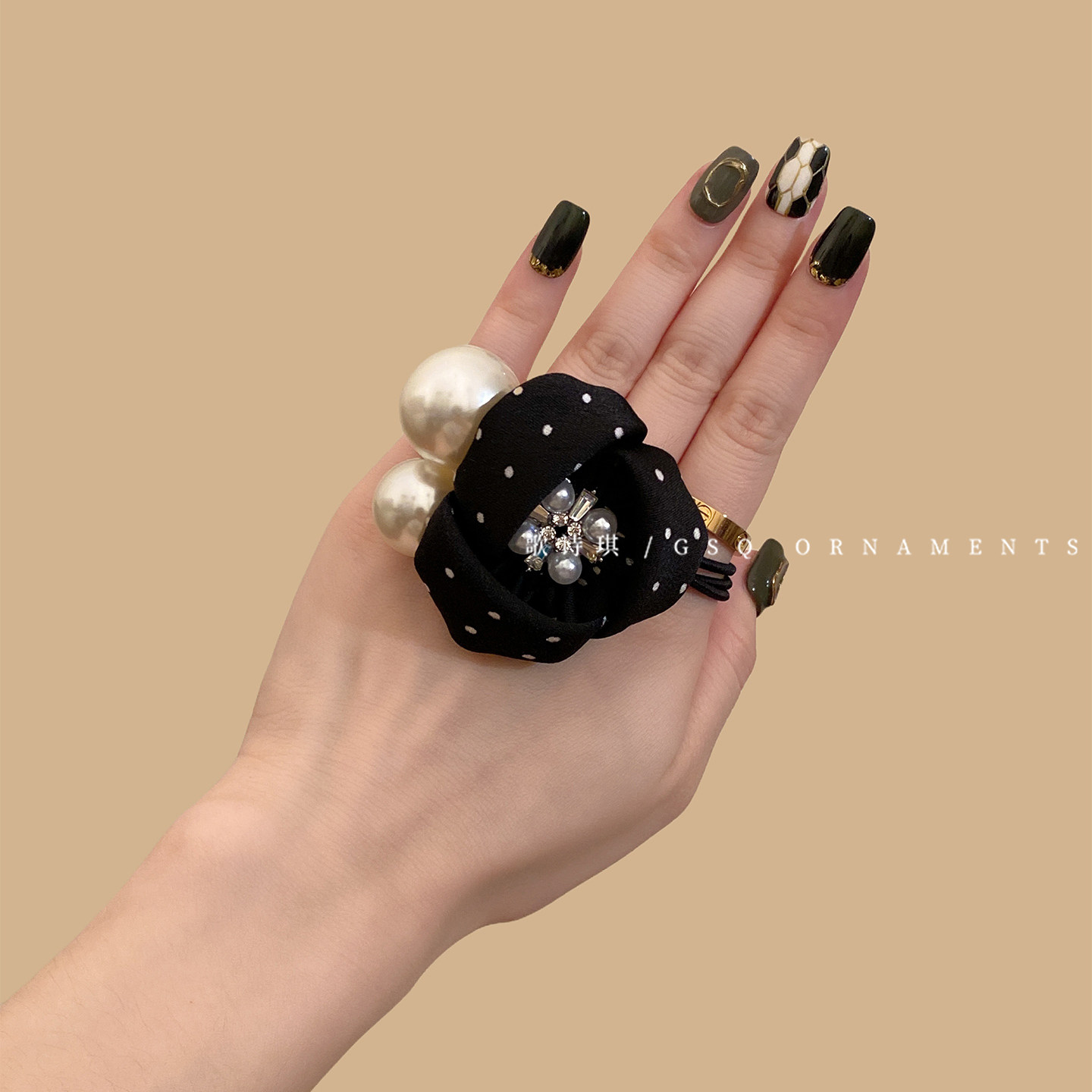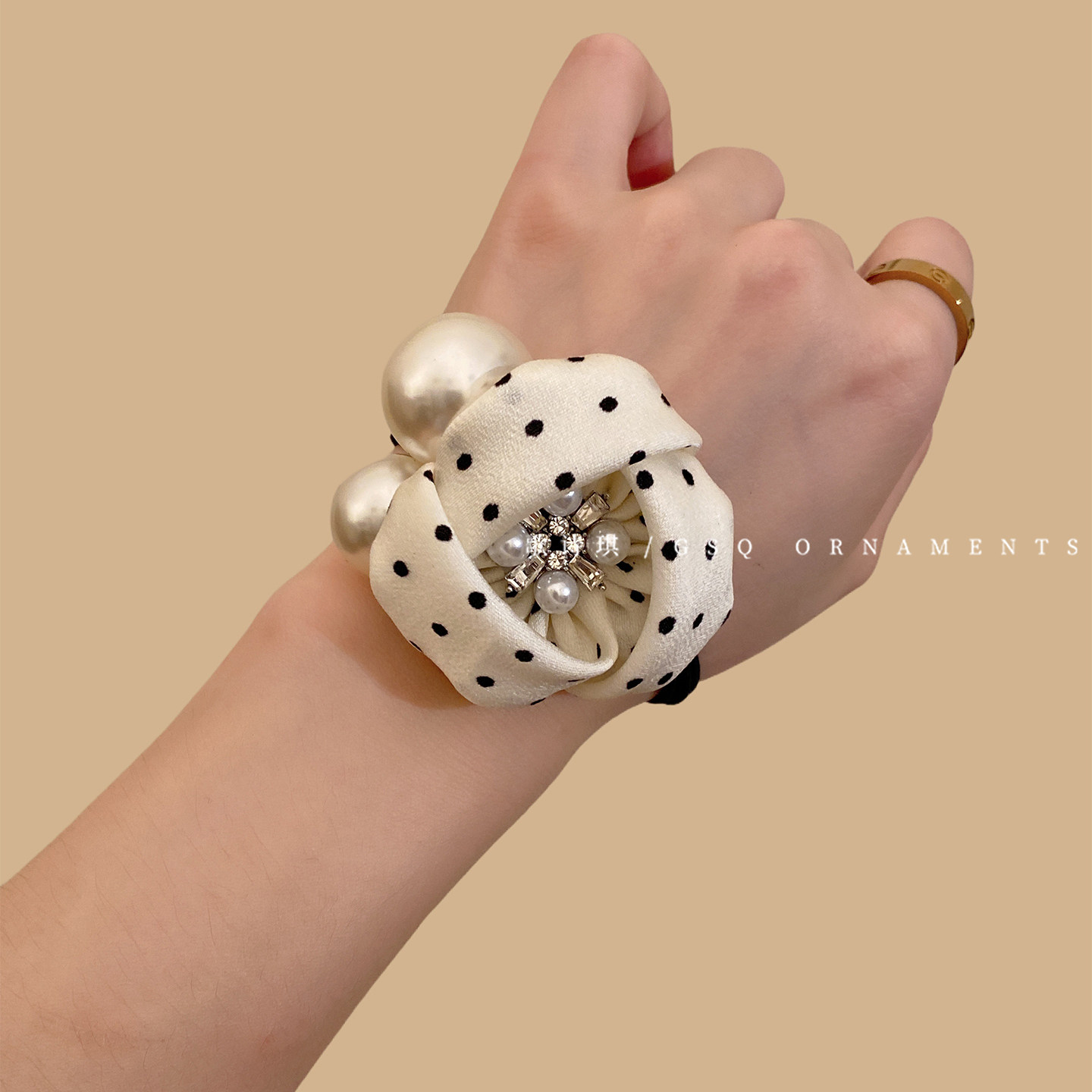 📚 法式温柔波点花朵细发圈女气质高弹力水晶珍珠扎头发马尾皮筋头绳