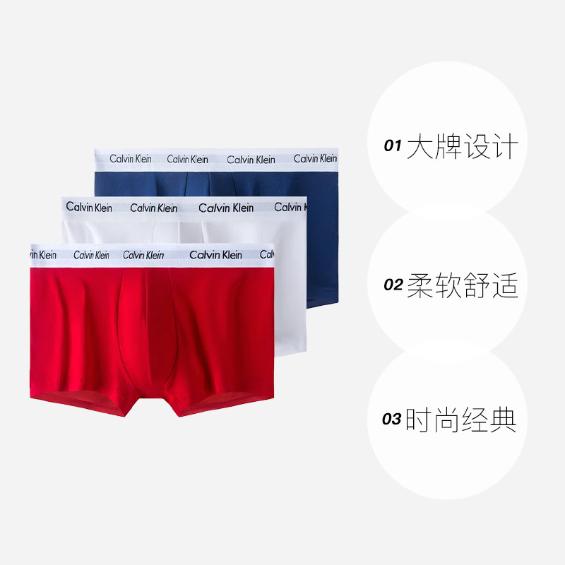 📚 【自营】CK内裤男士棉质3条装防夹臀平角内裤送男友礼物 U2664G