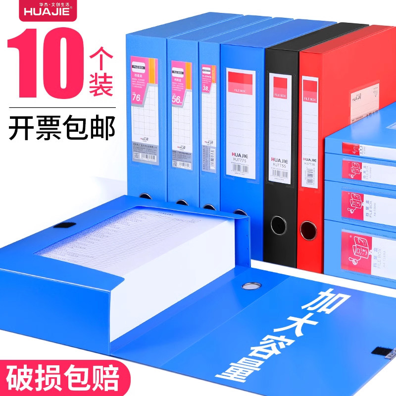 📚 10个装加厚A4文件盒档案盒塑料文件资料盒粘扣折叠办公用品文件夹收纳盒资料会计凭证盒干部人事档案盒
