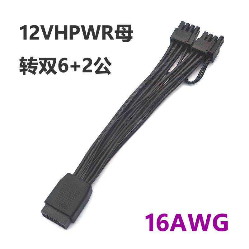📚 12VHPWR母转双头6+2公16Pin ATX3.0 PCIE5.0电源线双8P转接线转换