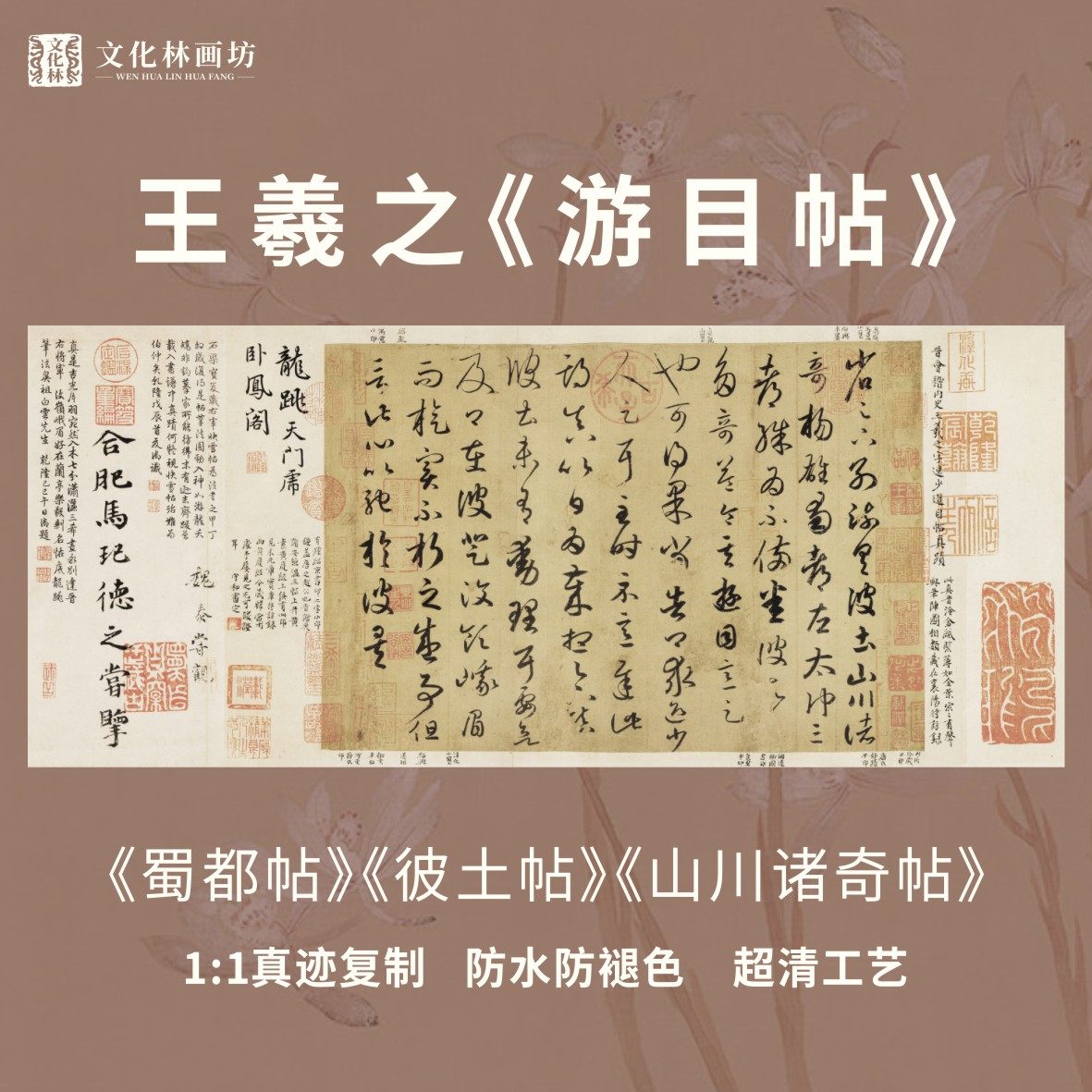 📚 王羲之游目帖纸本草书法名帖仿真迹国画芯装裱手卷横版临摹字帖