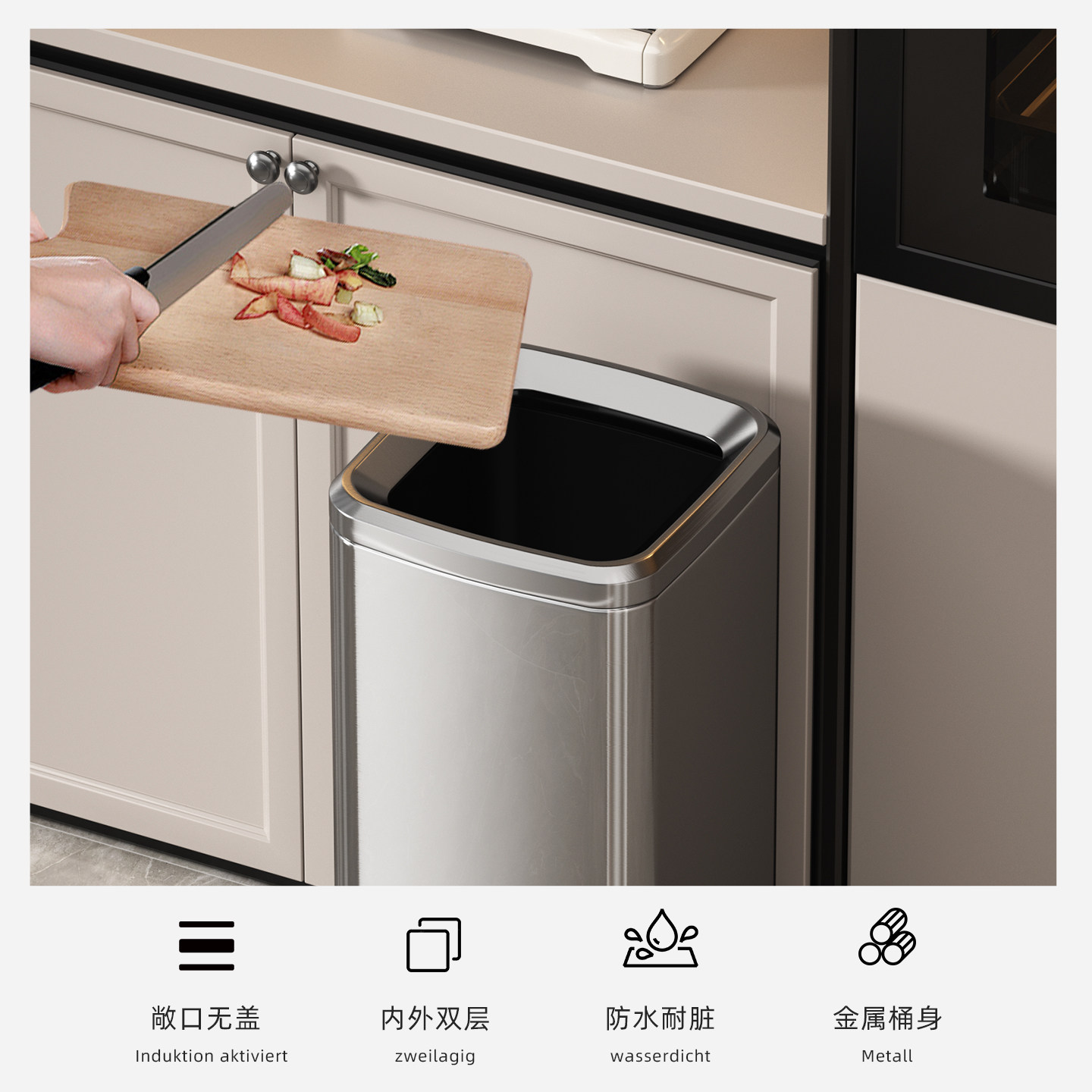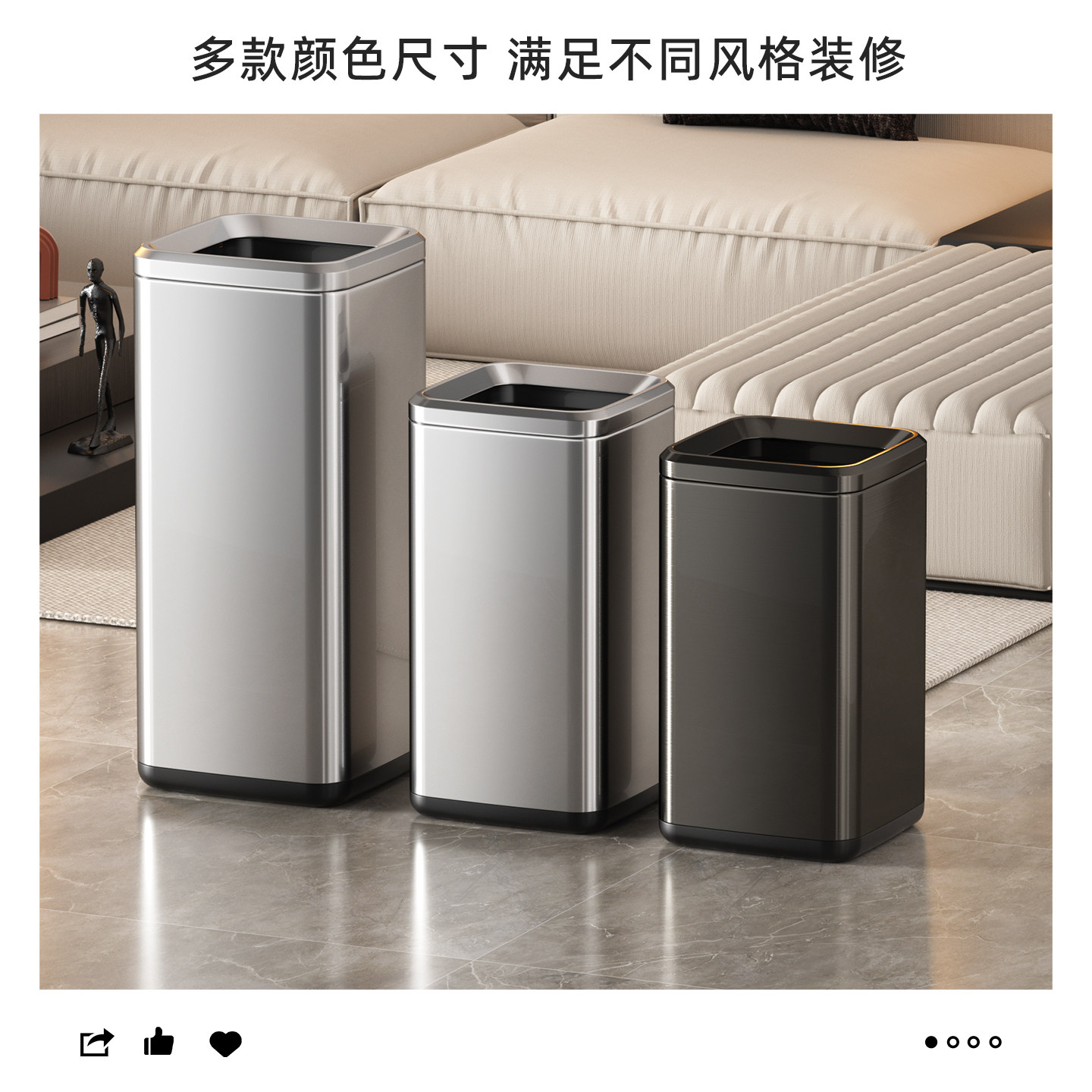 📚 不锈钢垃圾桶家用新款高颜值客厅厨房正方形轻奢高端德式小钢桶