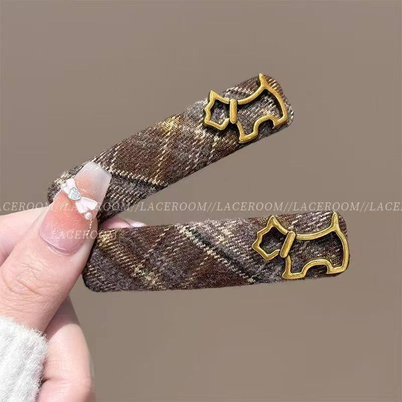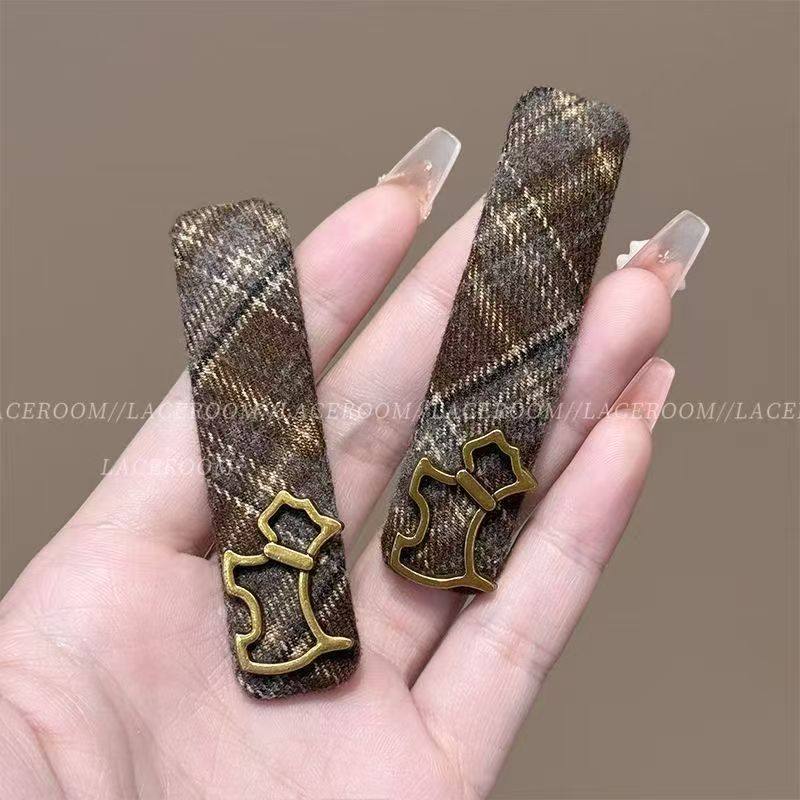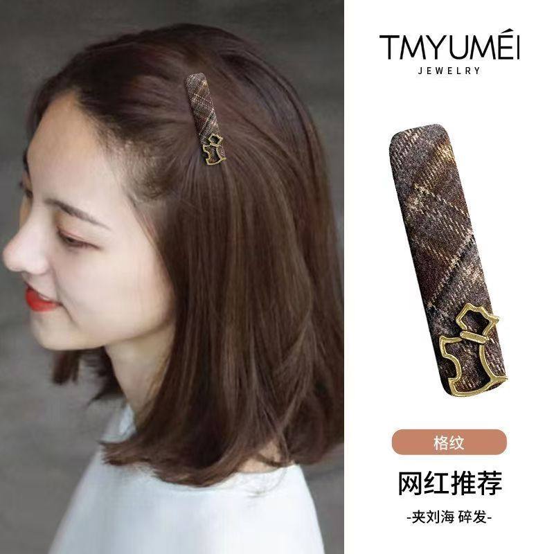 📚 复古碎发夹掰掰夹发卡BB夹格纹边发夹金属扣美拉德风格发卡夹头饰