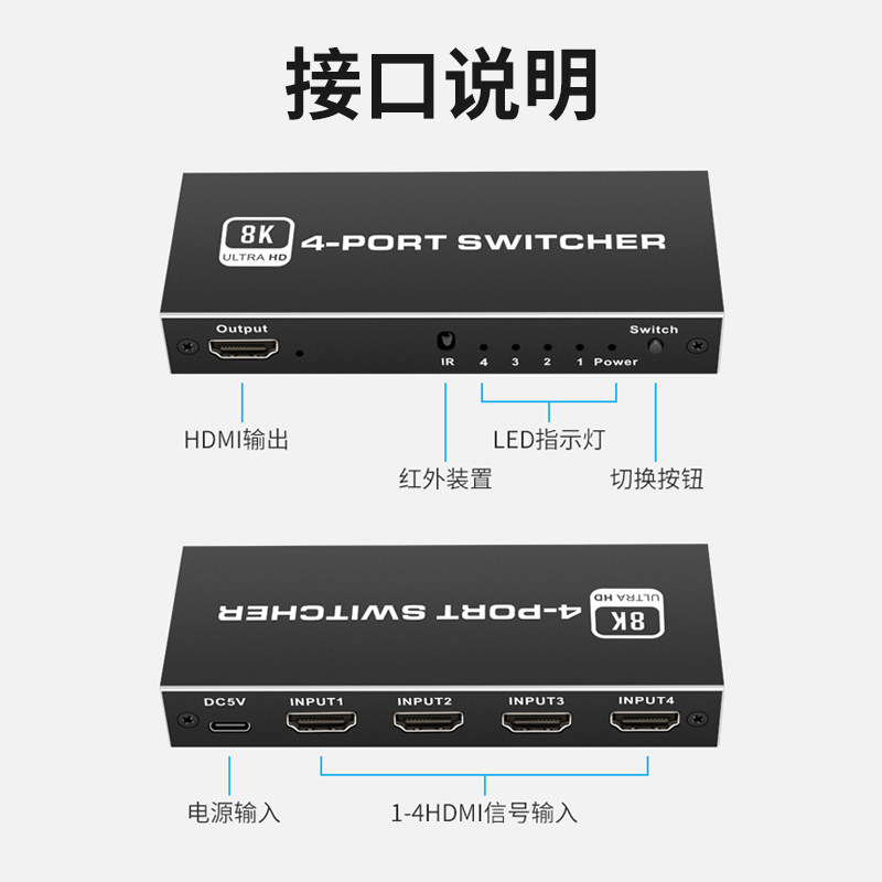 📚 高清HDMI2.1切换器8K高清3/4/5进1出4K120HZ2K144HZ高刷显示器共享电脑PS5音视频集线器支持VRR和HDR杜比遥控