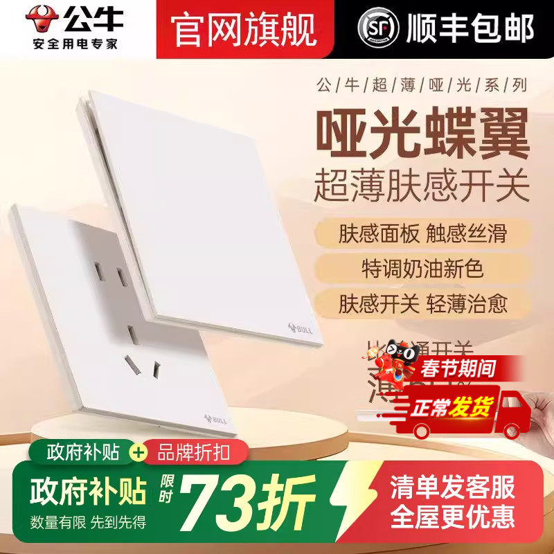📚 公牛G57米绒白超薄开关插座面板哑光肤感暗装G56奶油风斜五孔家用