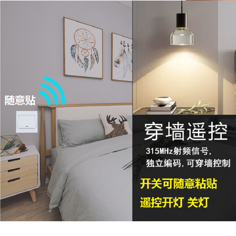 📚 无线开关带插座免布线一开五孔插座86型电灯随意贴远程遥控开关灯